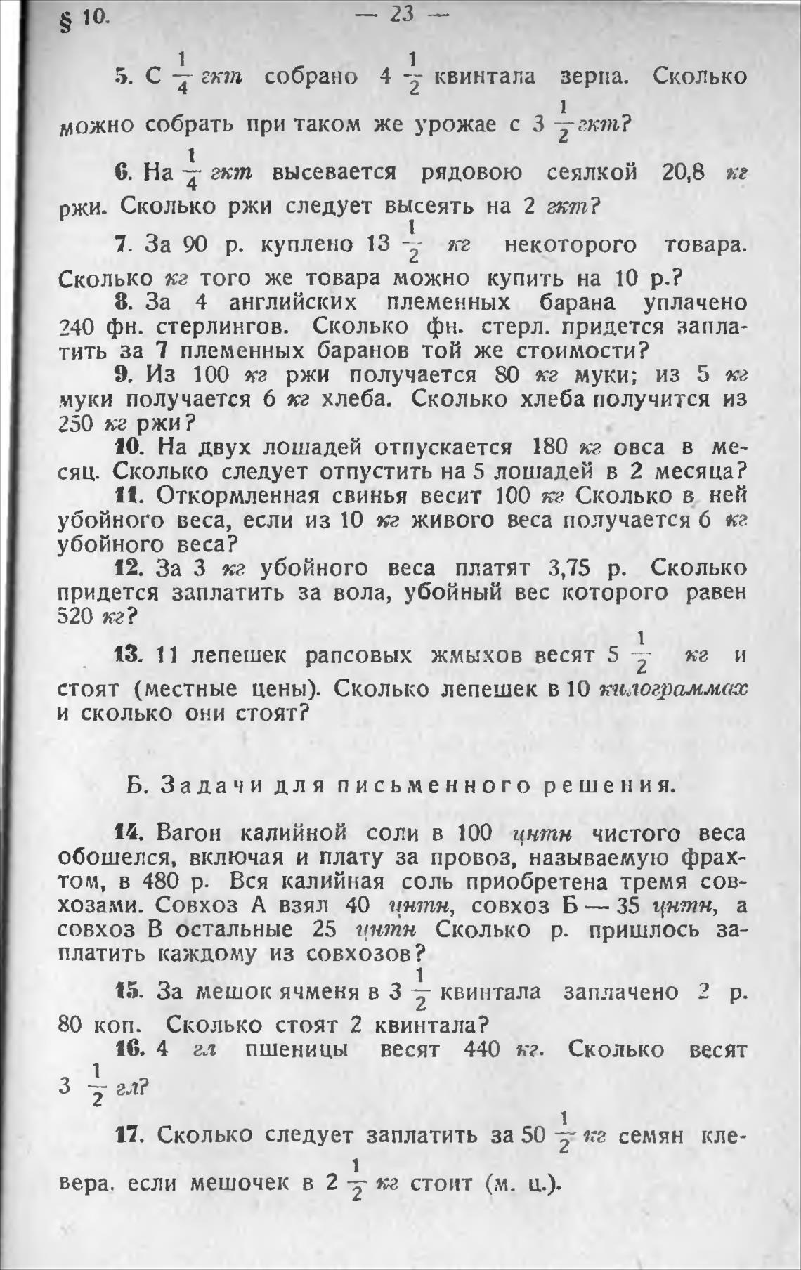 Б. Задачи для письменного решения.