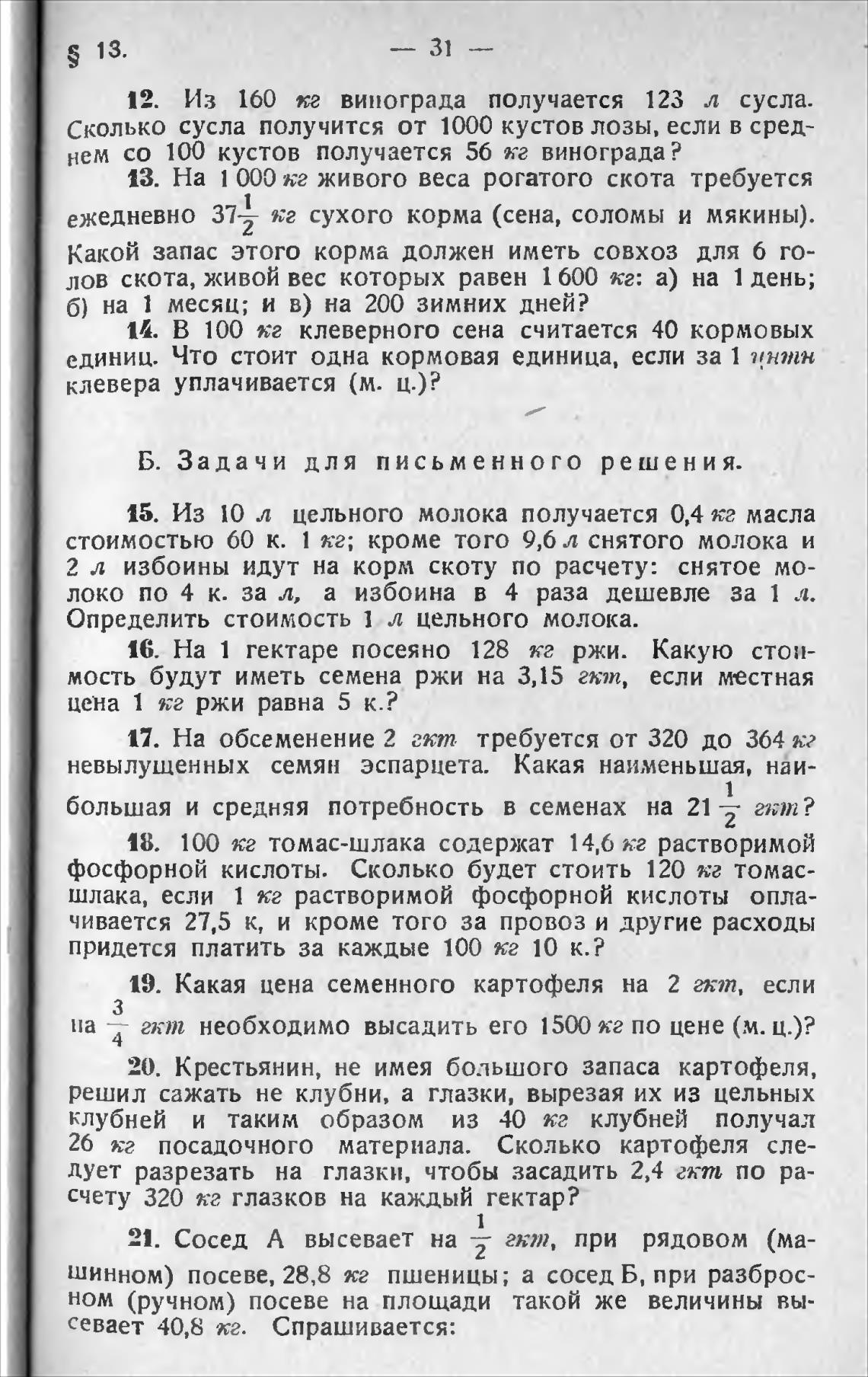 Б. Задачи для письменного решения.