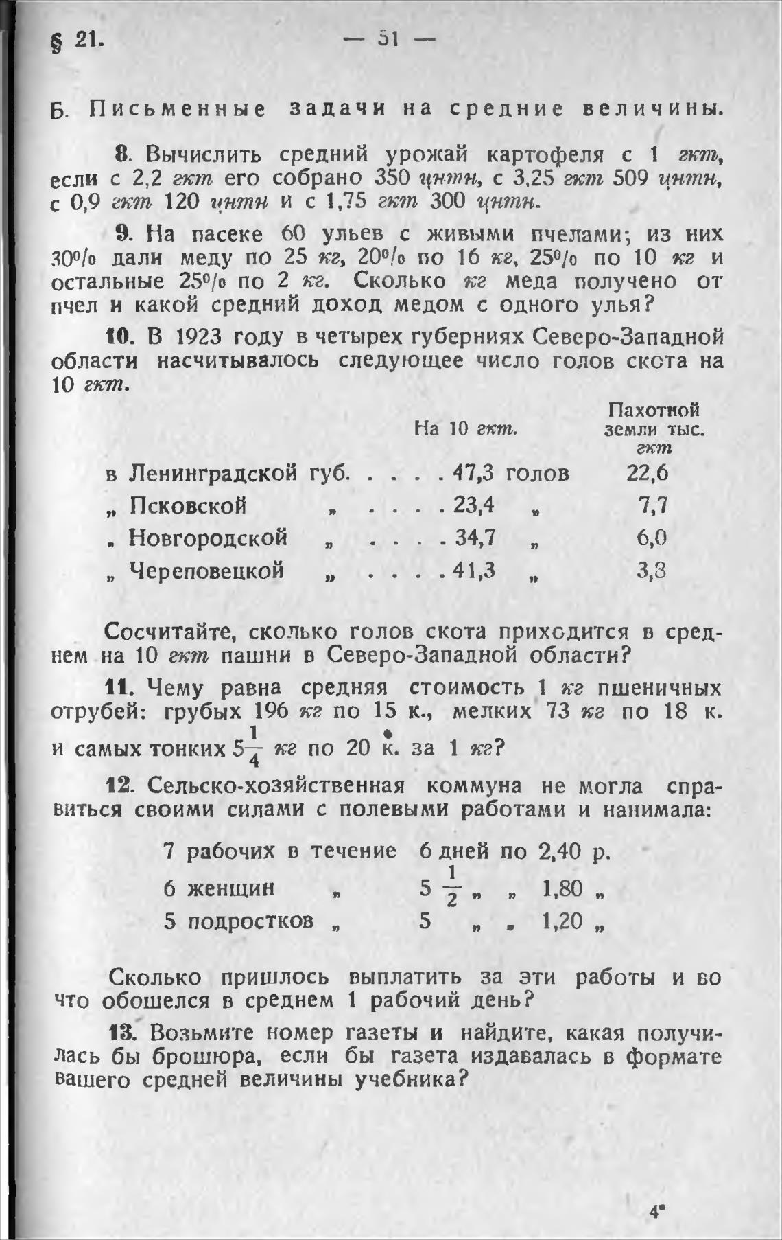 Б. Письменные задачи на средние величины.
