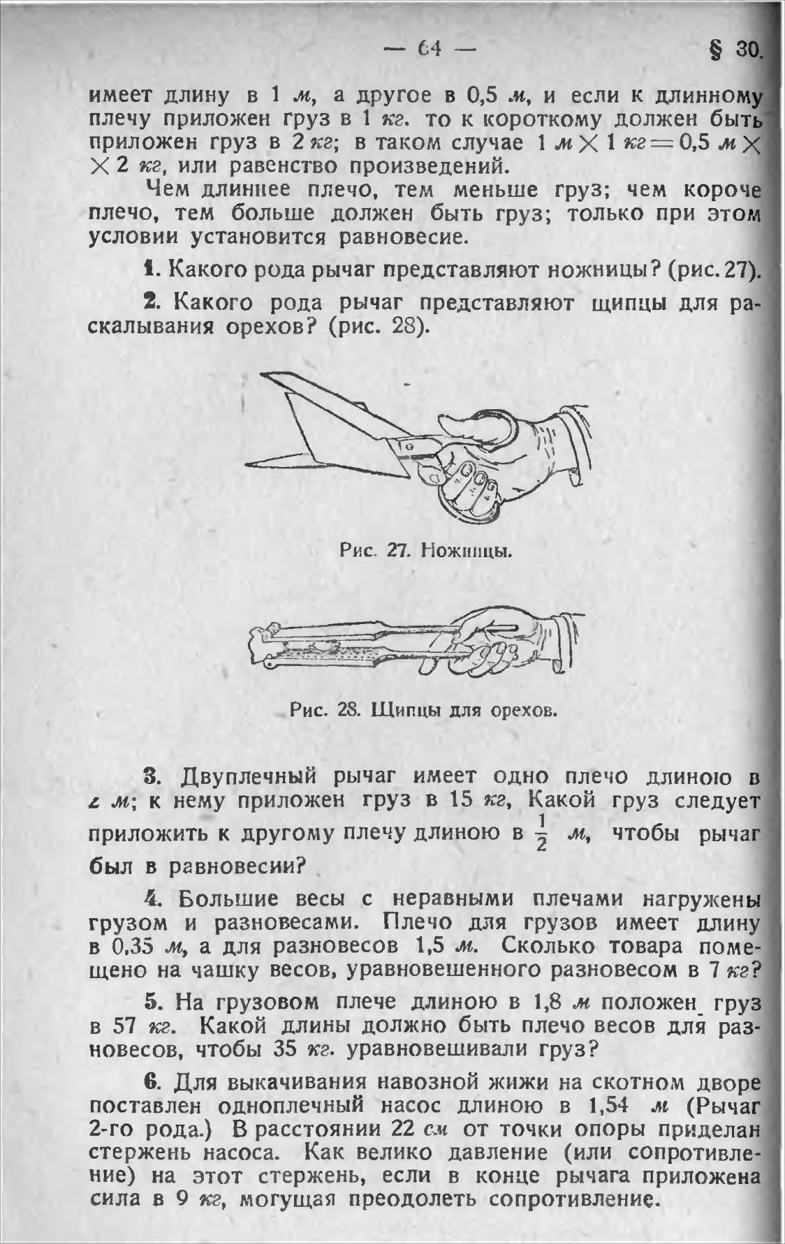 1. Какого рода рычаг представляют ножницы? (рис. 27).