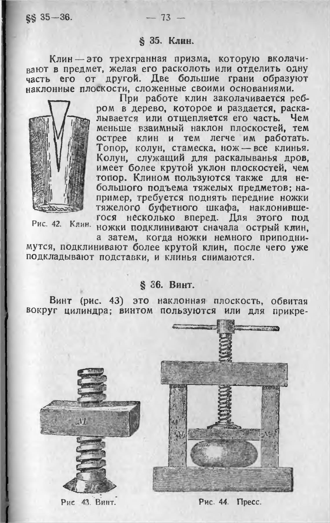 Винт (рис. 43) это наклонная плоскость, обвитая