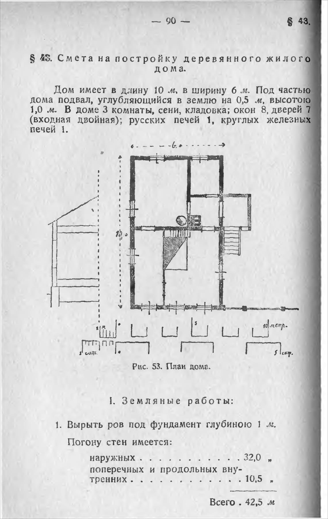 Дом имеет в длину 10 л, в ширину 6 м. Под частью