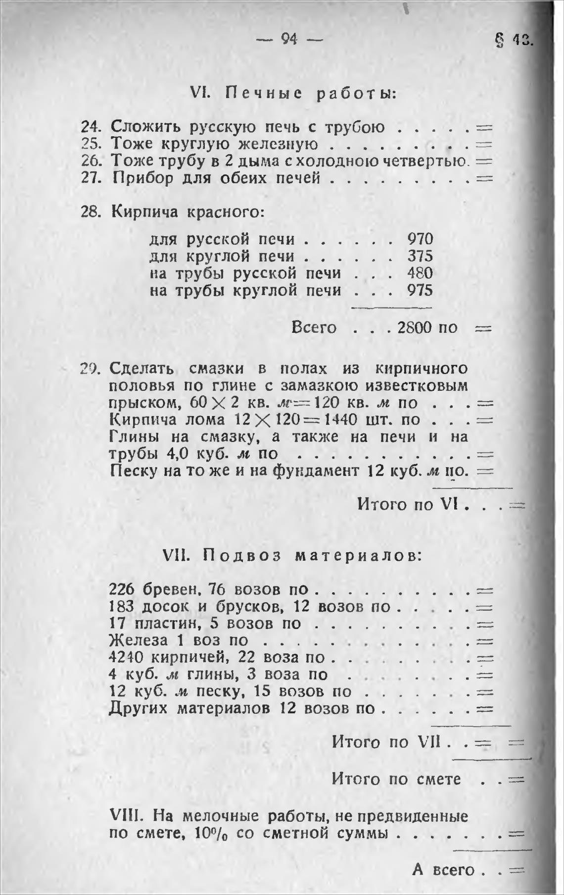 Vi. Печные работы: