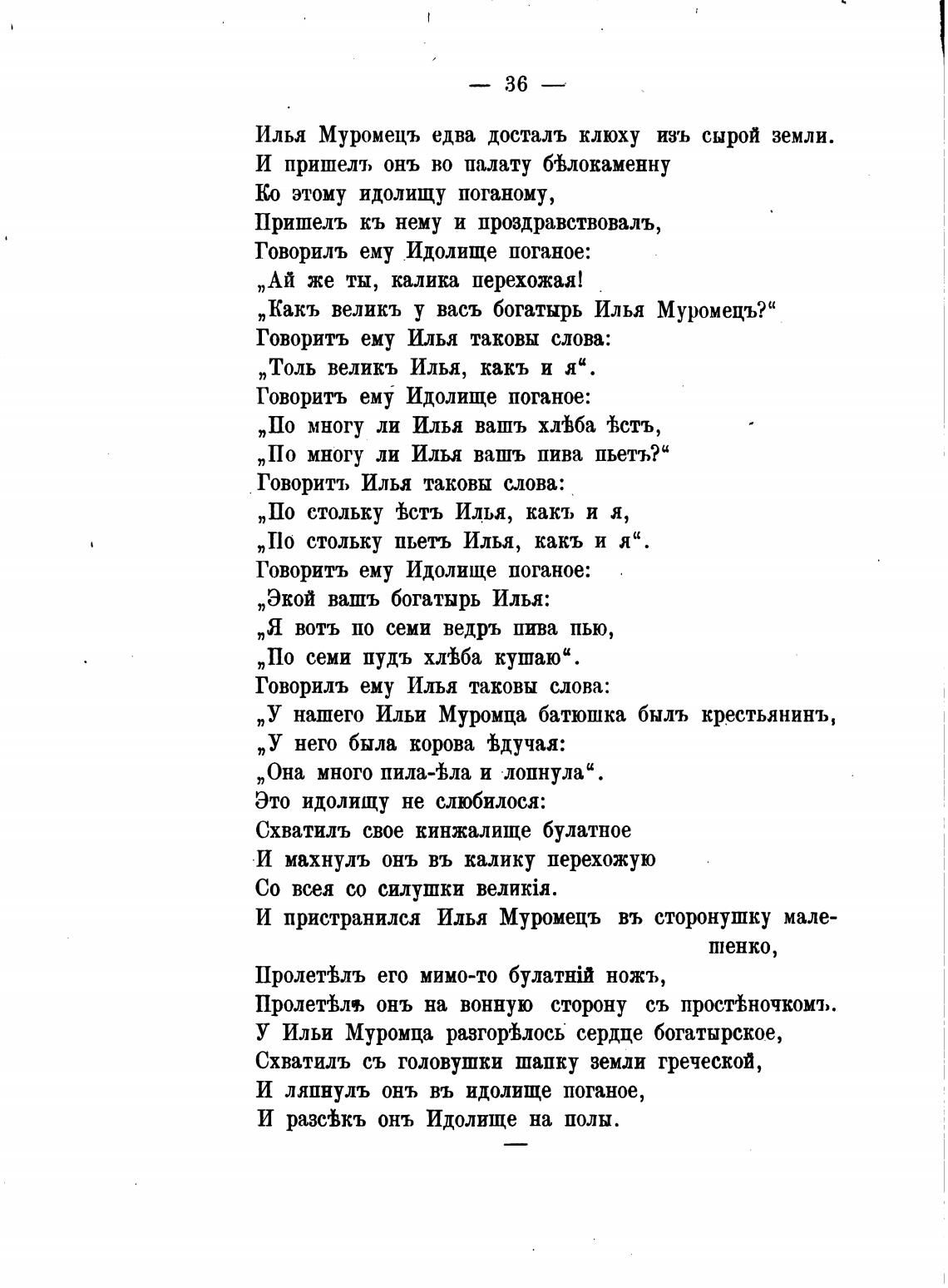 „У нашего Ильи Муромца батюшка быль крестьянинъ,