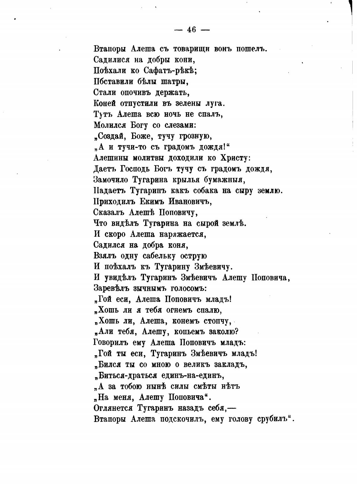 Говориль ему Алеша Поповичъ млады