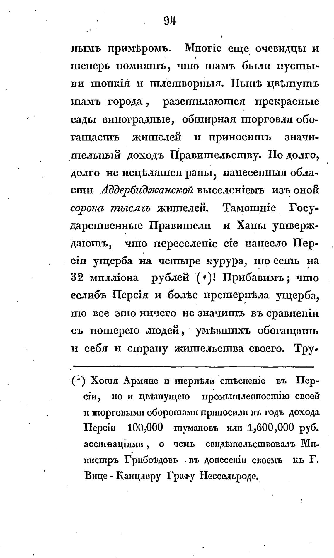 инстръ Грибоьдовъ . въ донесе:йи своемъ кь Г.
