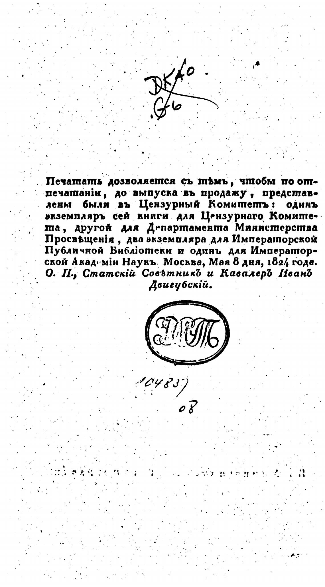 слой Наукъ Москва, Мая 8 дня, 1824 года.