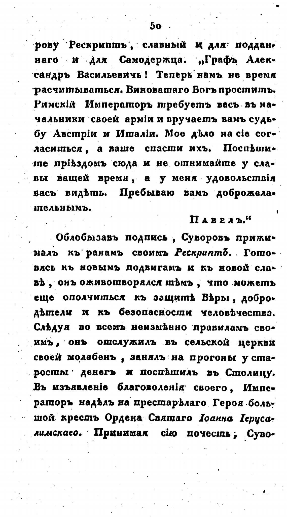 Облобызавъ подпись , Суворовь прижи-