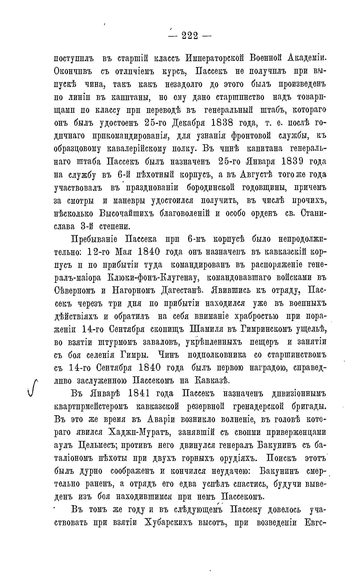 наго штаба Пассекъ быль назначень 25-го Января 1839 года