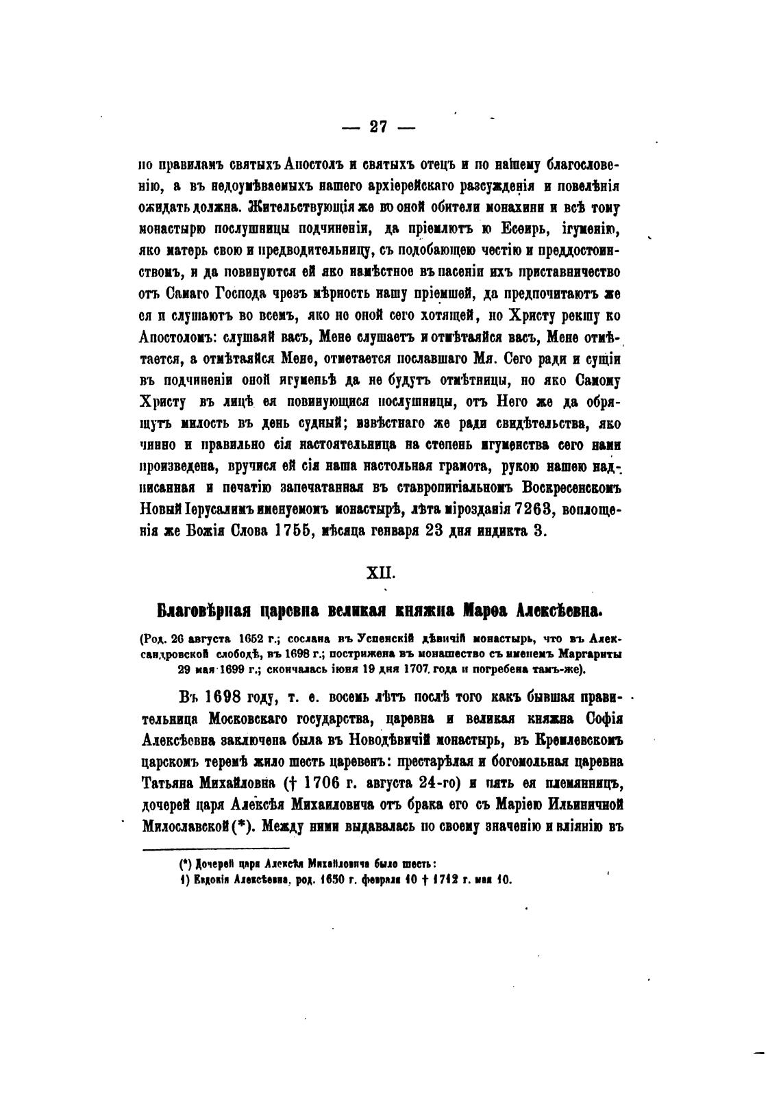 савдрвско• иобод%, въ 1698 г.; пострижена въ монашество миенеиъ Марх•ариты