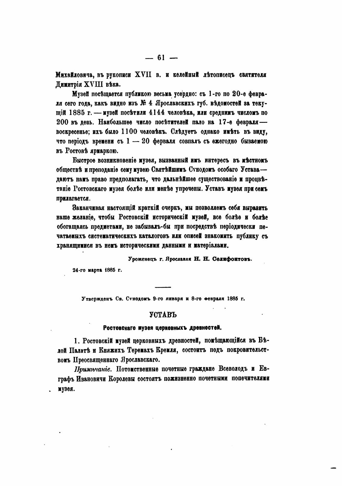 TRHie Ростовскаго музея бомо вля иенђв упрчены. Уставь иувва при секь