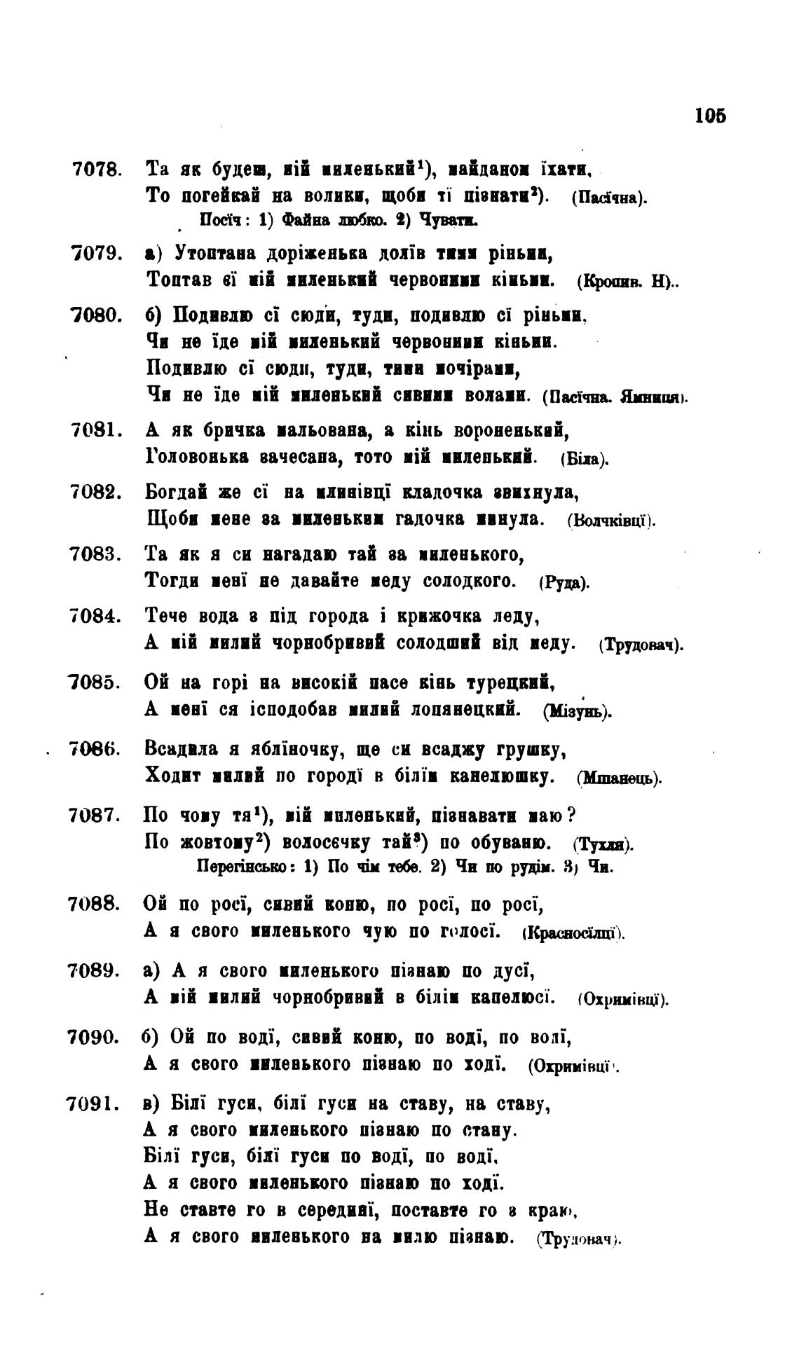 а) А я свого ииленького [јанаю по nyci,