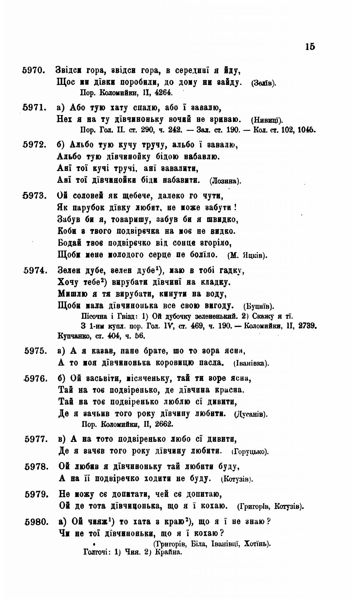 З 1•ии куц. пор. Гол. 1 У, т. 469, ч. 190. — Коломийки, 11, 2739.