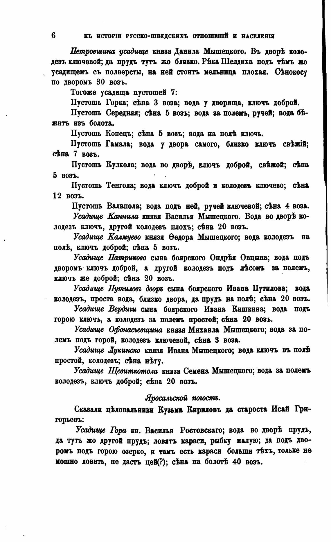 Усадище Лукинсхо князя Ивана Мышецкош; вода иючъ въ пой