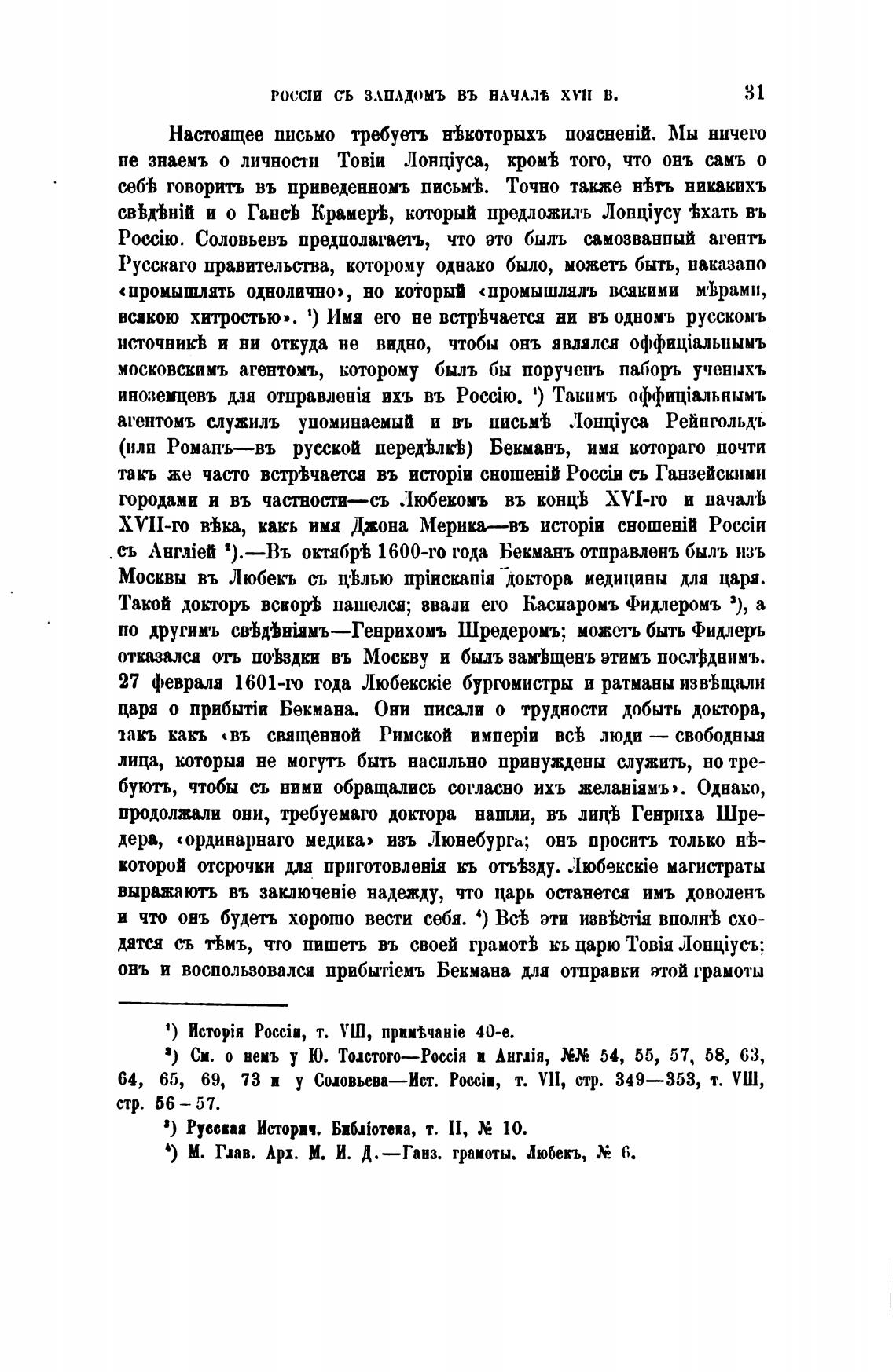 октябр'Ь 1600-го года Бекманъ отправлень быль изъ