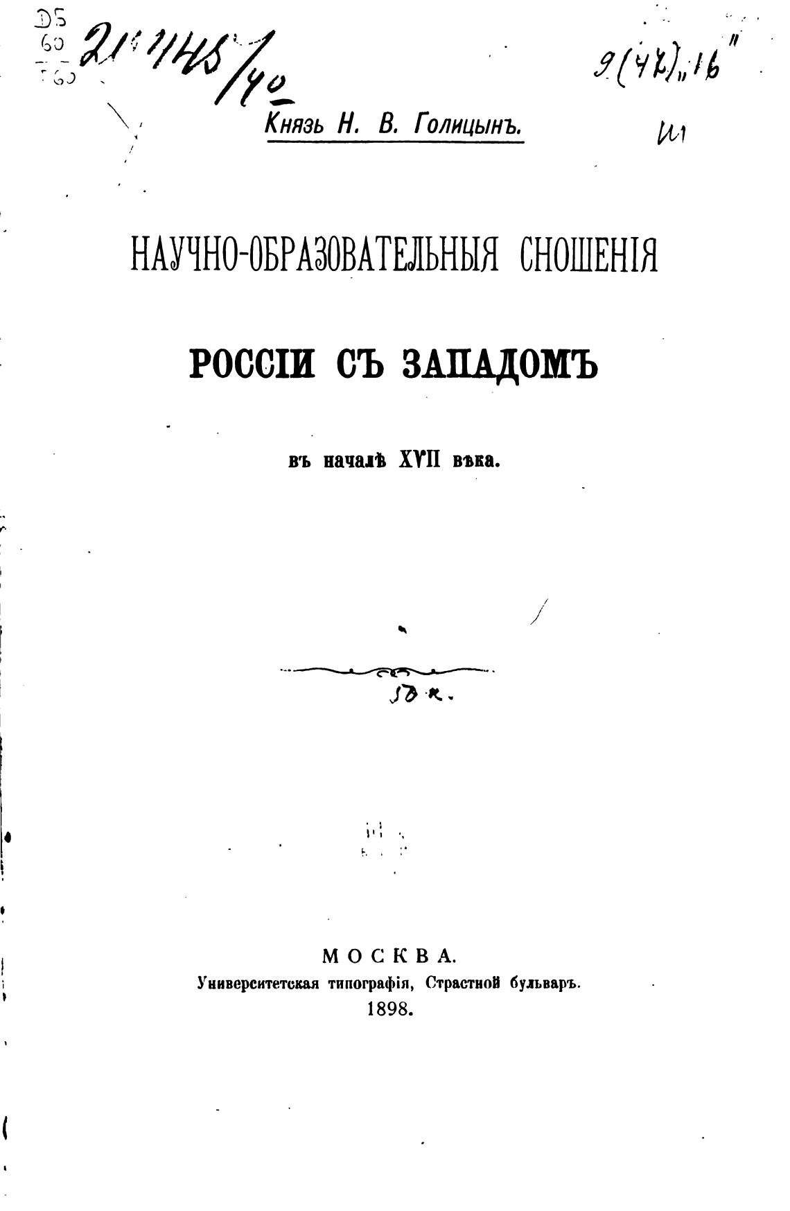 Князь Н. В. Голицынъ.