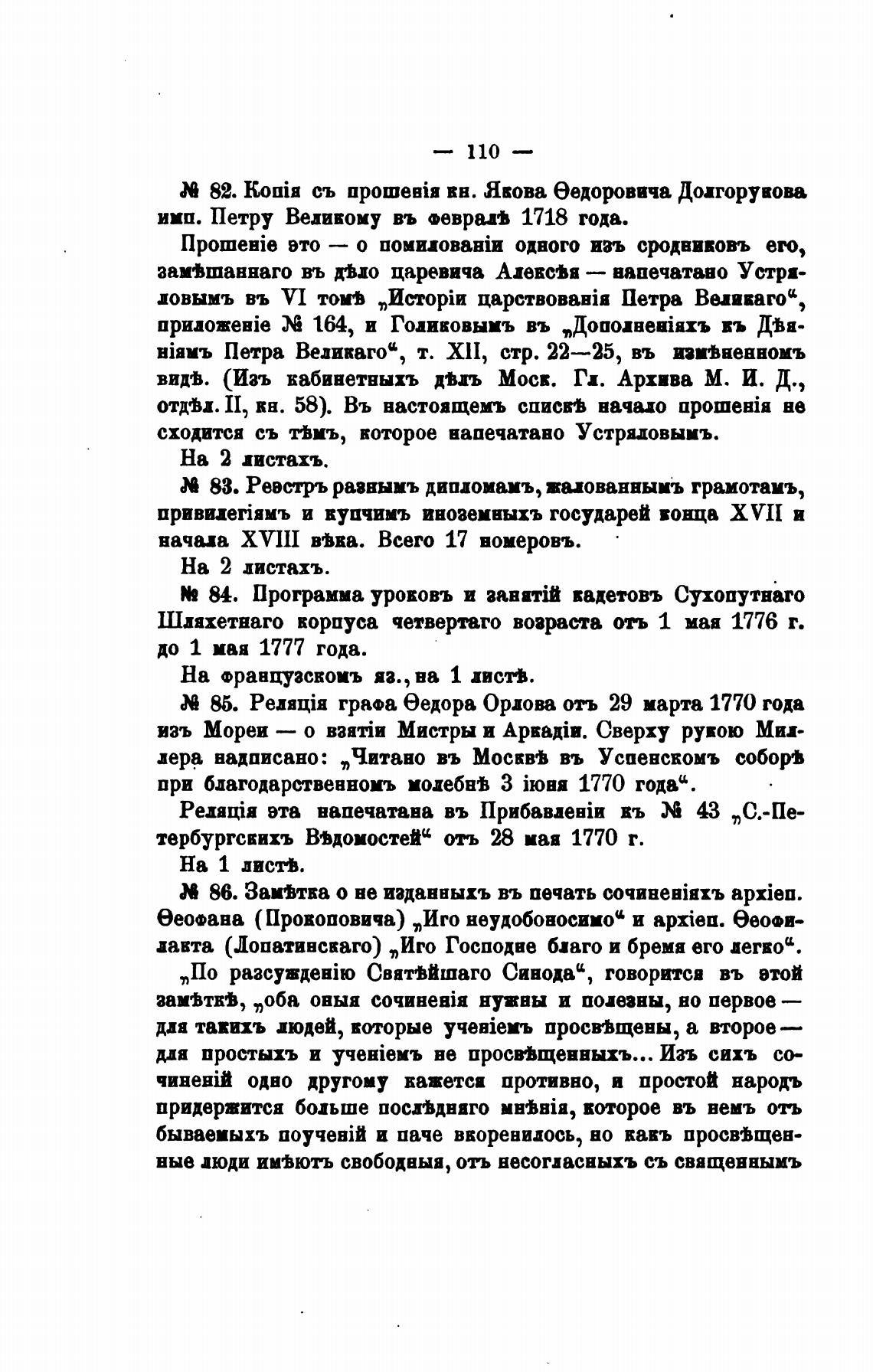 86. Заимка о не издавныхъ въ печать apxien.