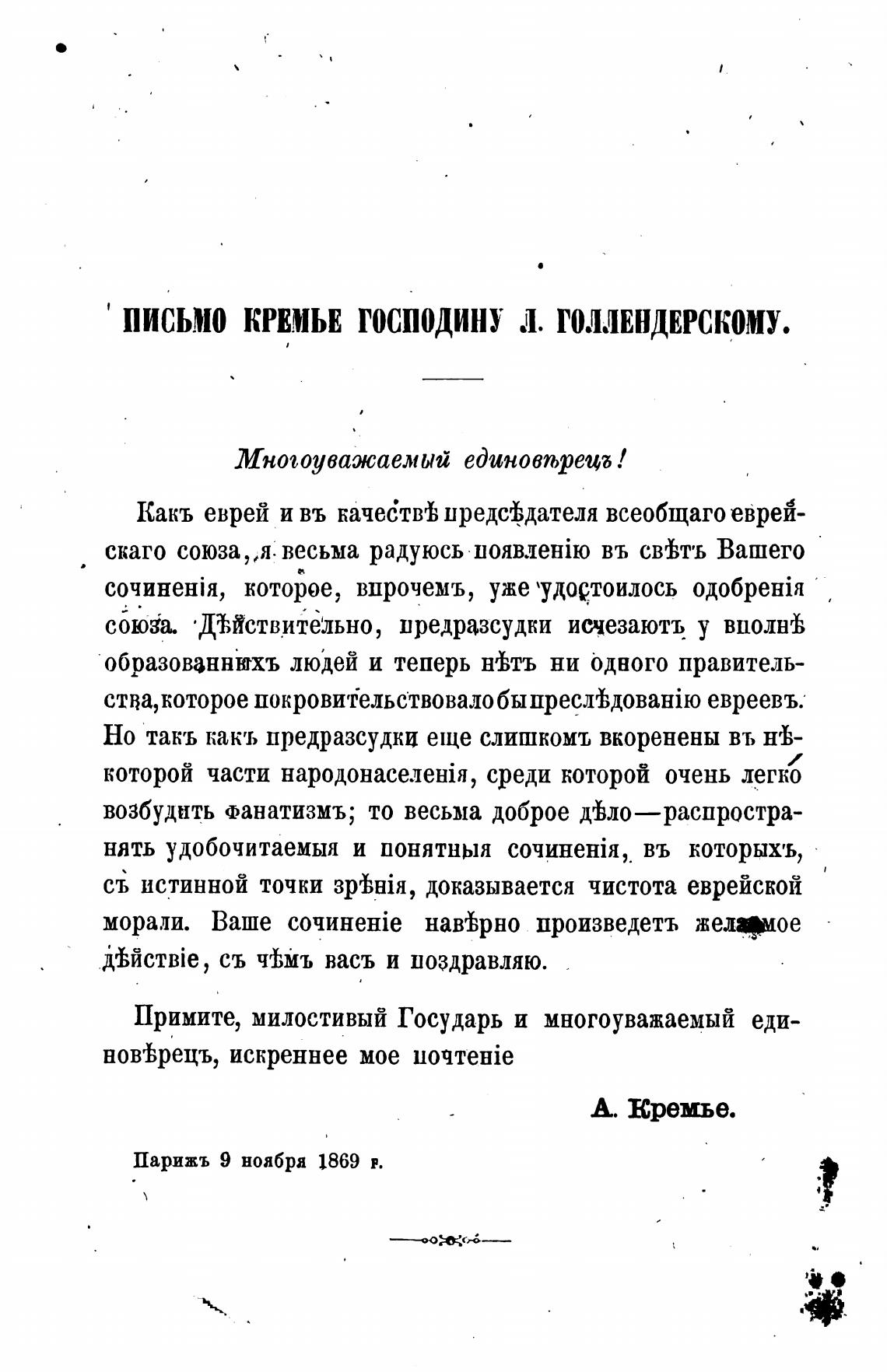 Парижъ 9 ноября 1869 Р.
