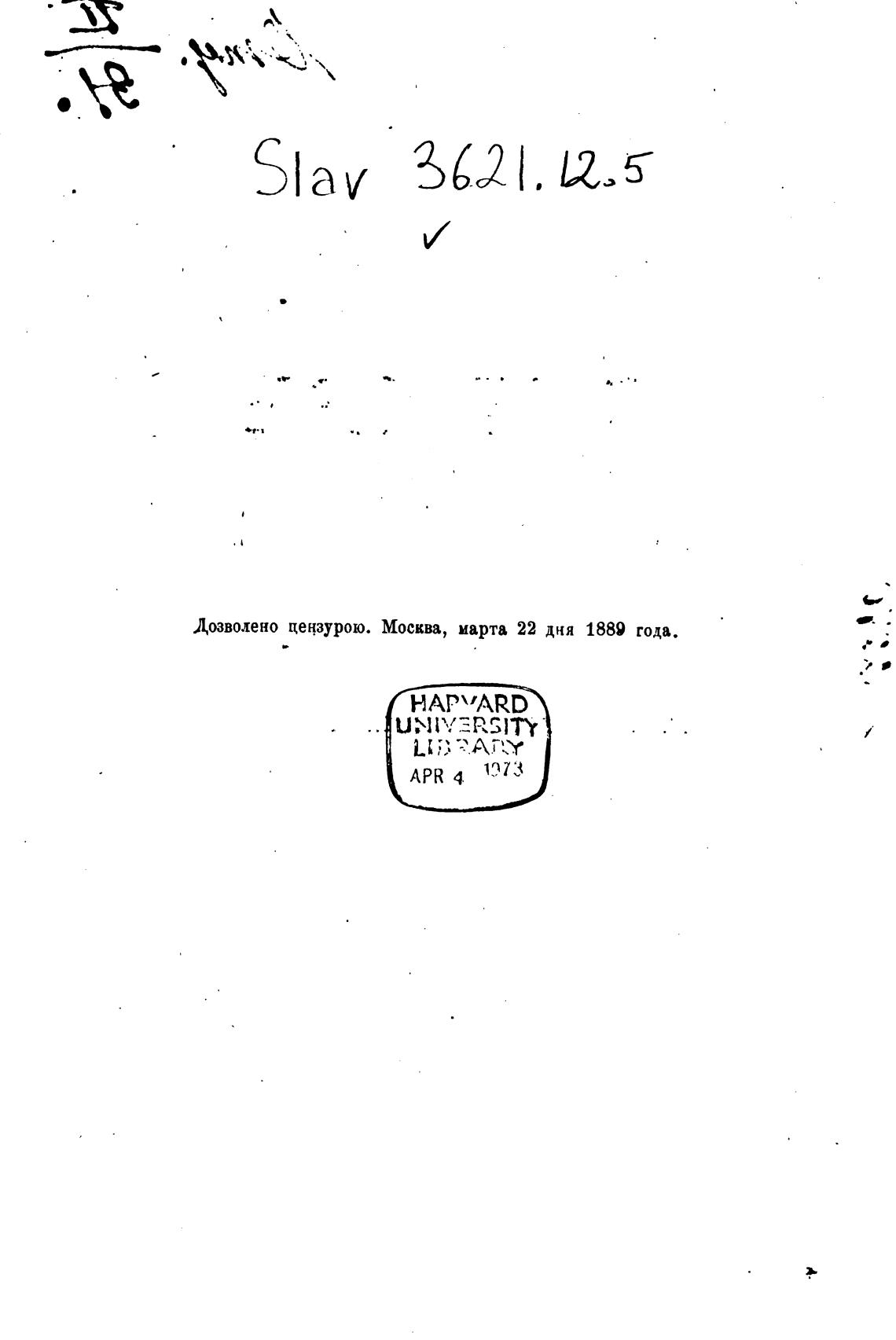 Дозволено цензурою. Москва, марта 22 дня 1889 года.