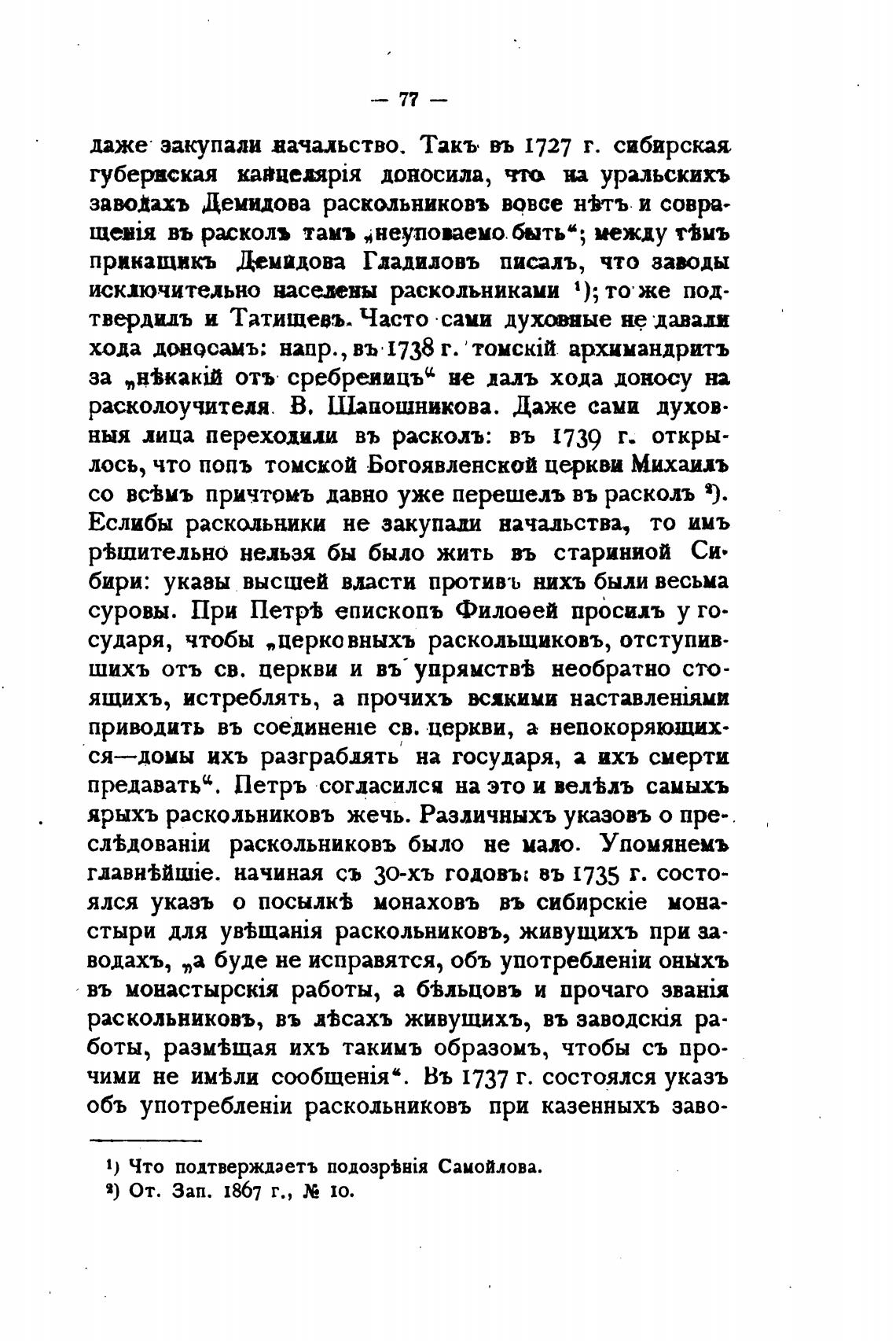 заводахъ Демидова раскольниковъ вовсе ньтъ и совра-