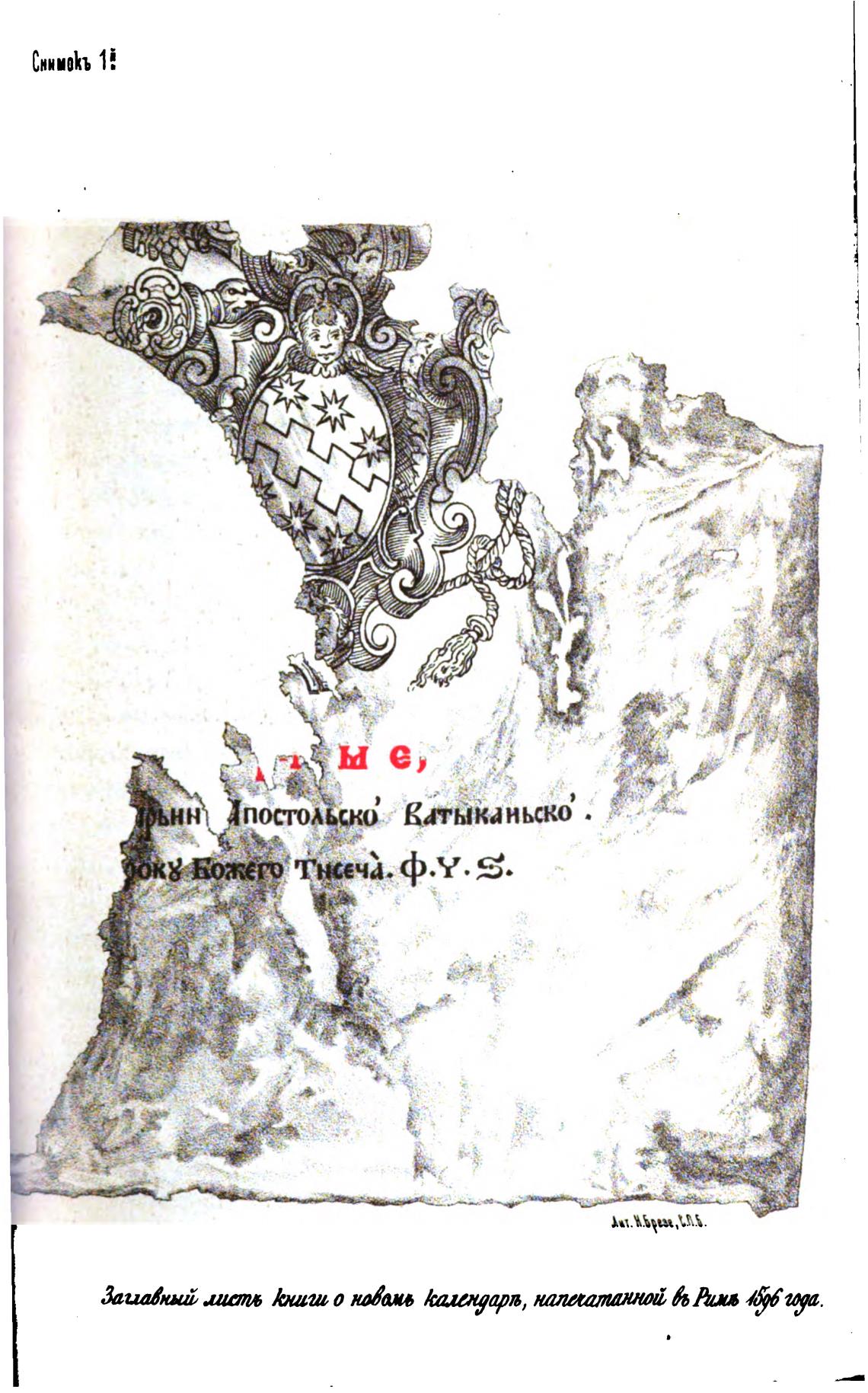 Книга о новом календаре, напечатанная в Риме в 1596 году - Головацкий Я. Ф.
