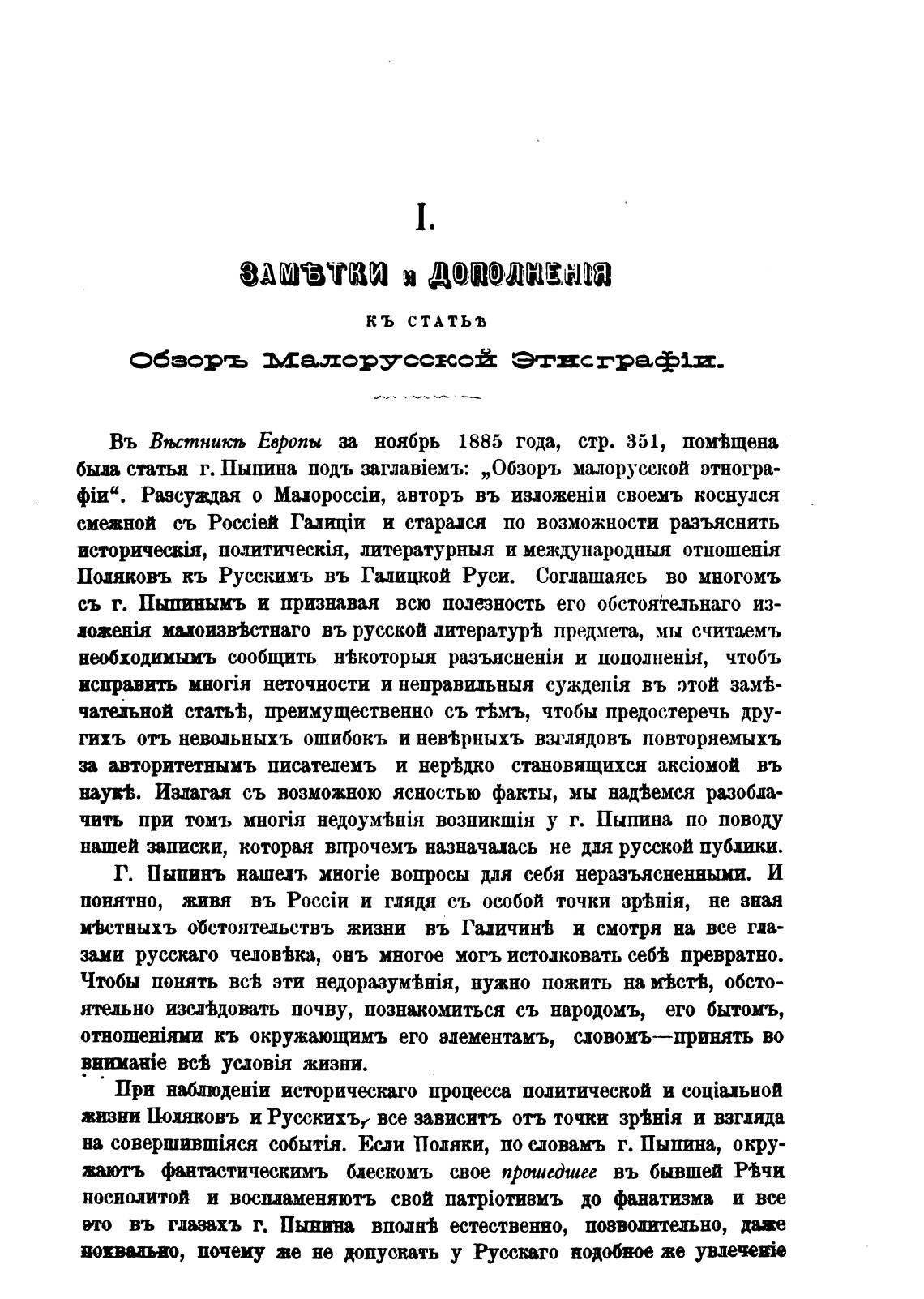 Поляковъ кь Рус,скимъ въ Галицкой Руси. Соглашаясь во многомъ