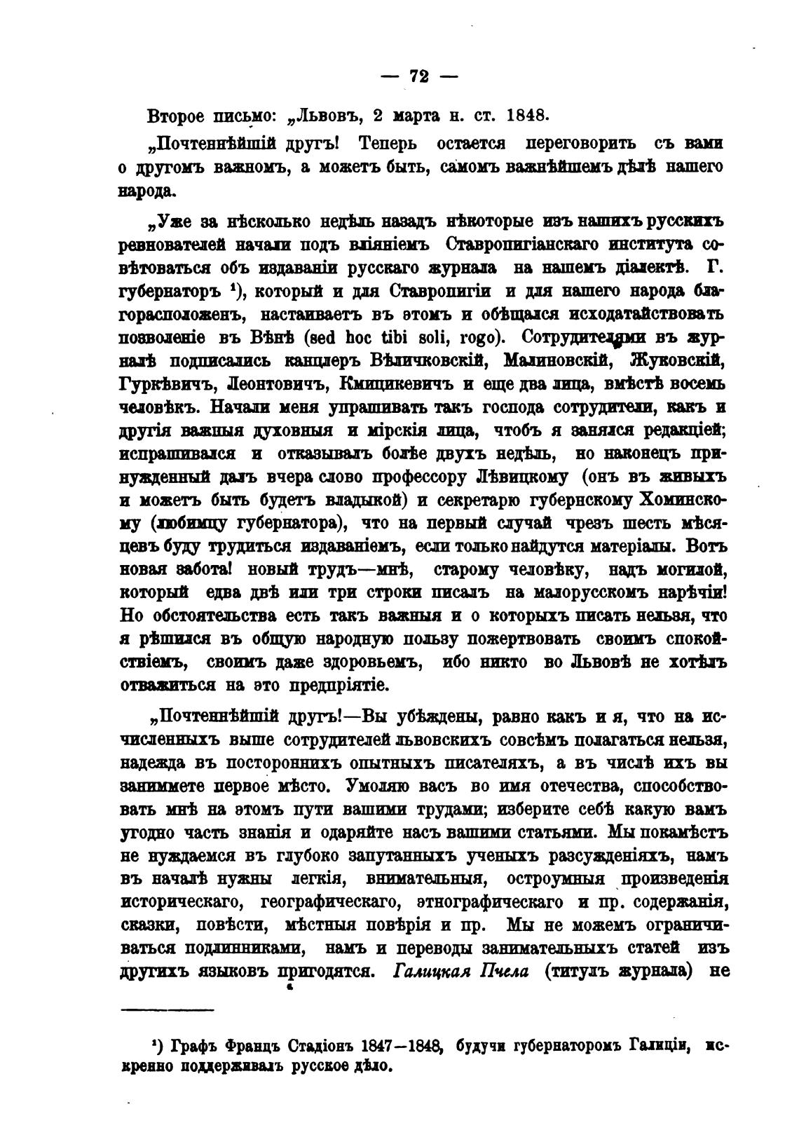 Второе письмо: „Львовъ, 2 марта н. ст. 1848.