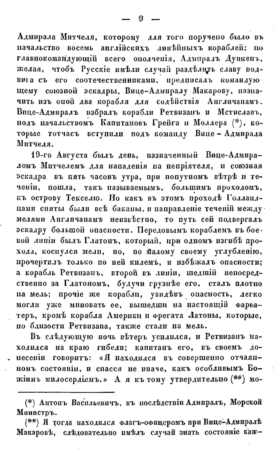 (**) Я тогда находился Флагъ-0Фицеромъ при Вице2АдмиралЬ