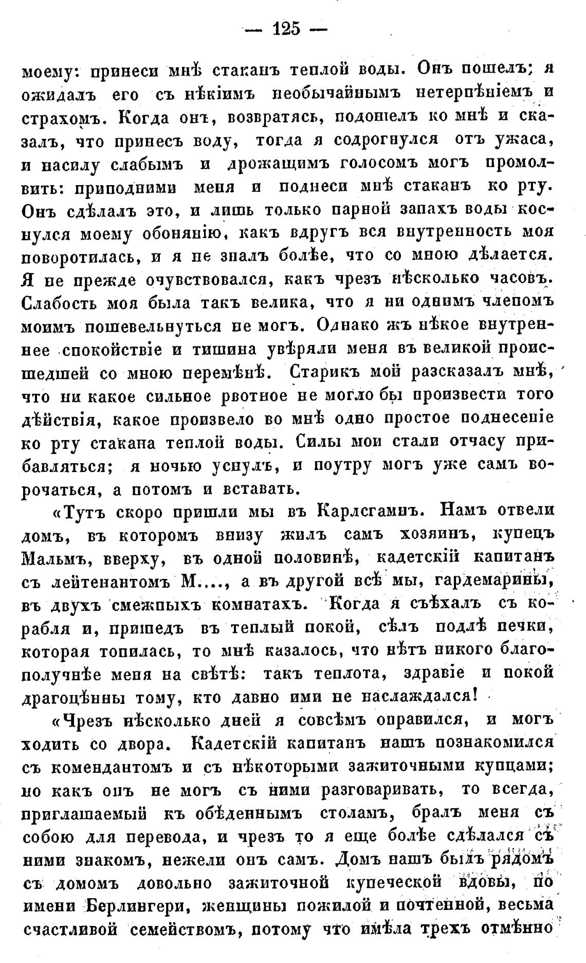 «Тутъ скоро пришли мы въ Карлсгамнъ. Намъ отвели