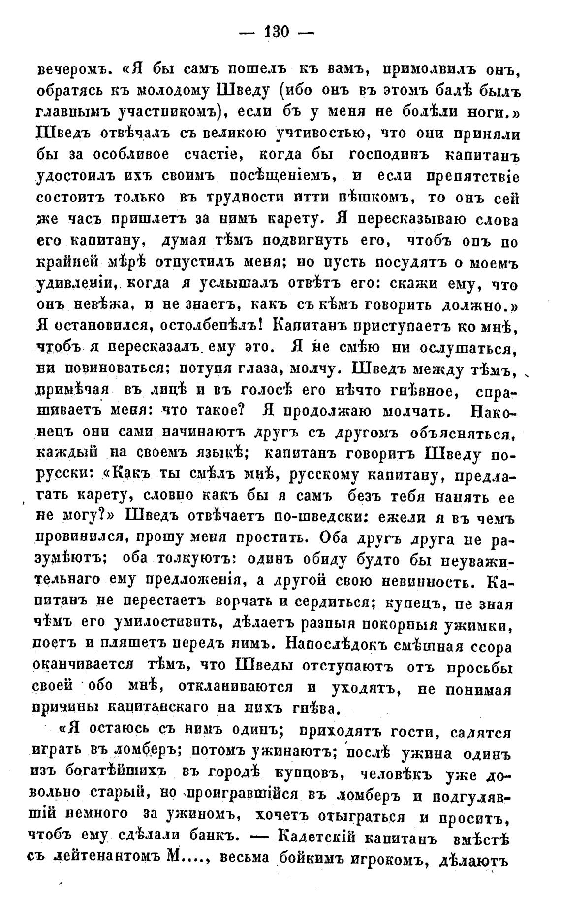 каждый на своемъ язык±,• капитанъ говорптъ Шведу по-