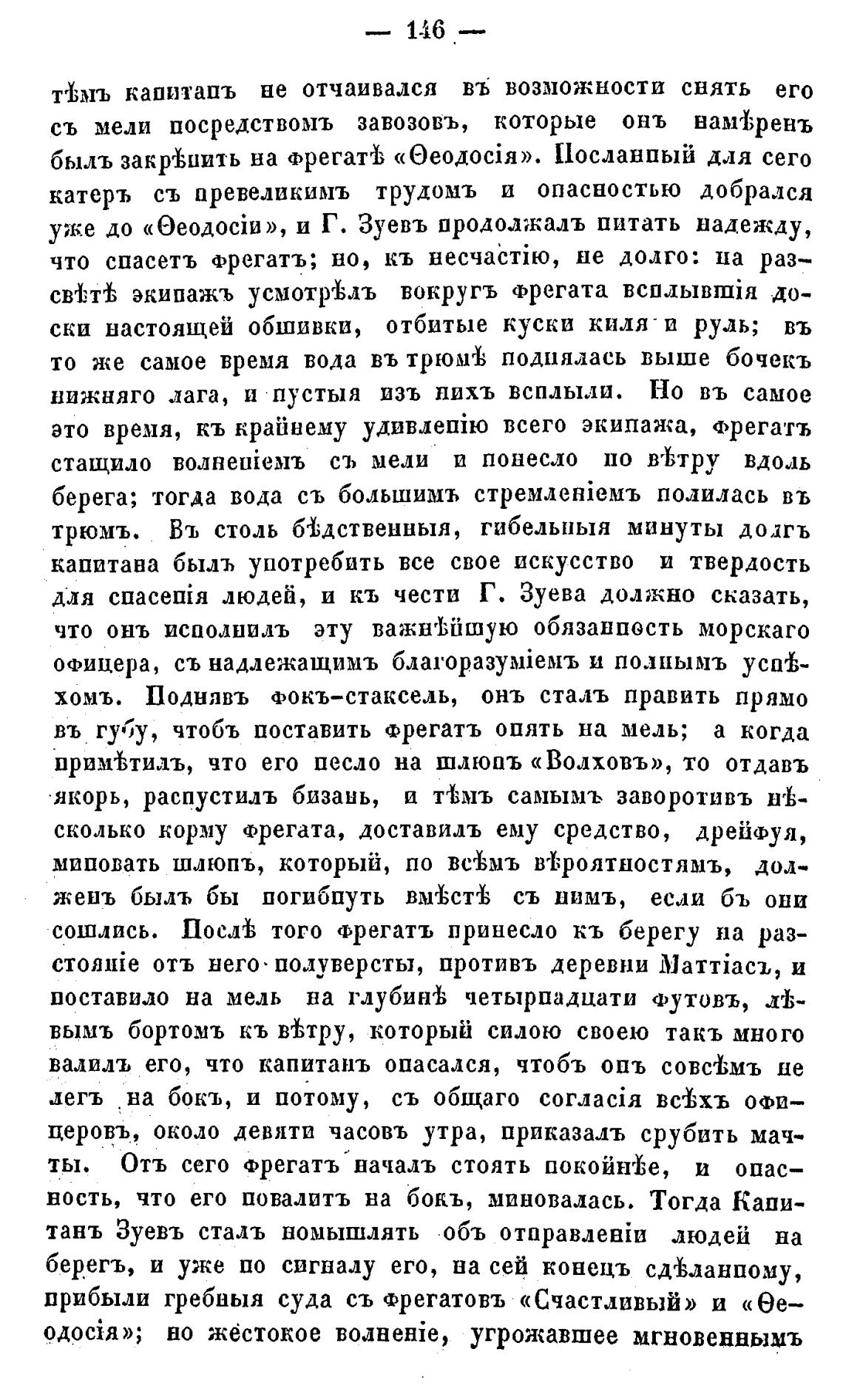 сошлись. того Фрегатъ принесло кь берегу на раз-