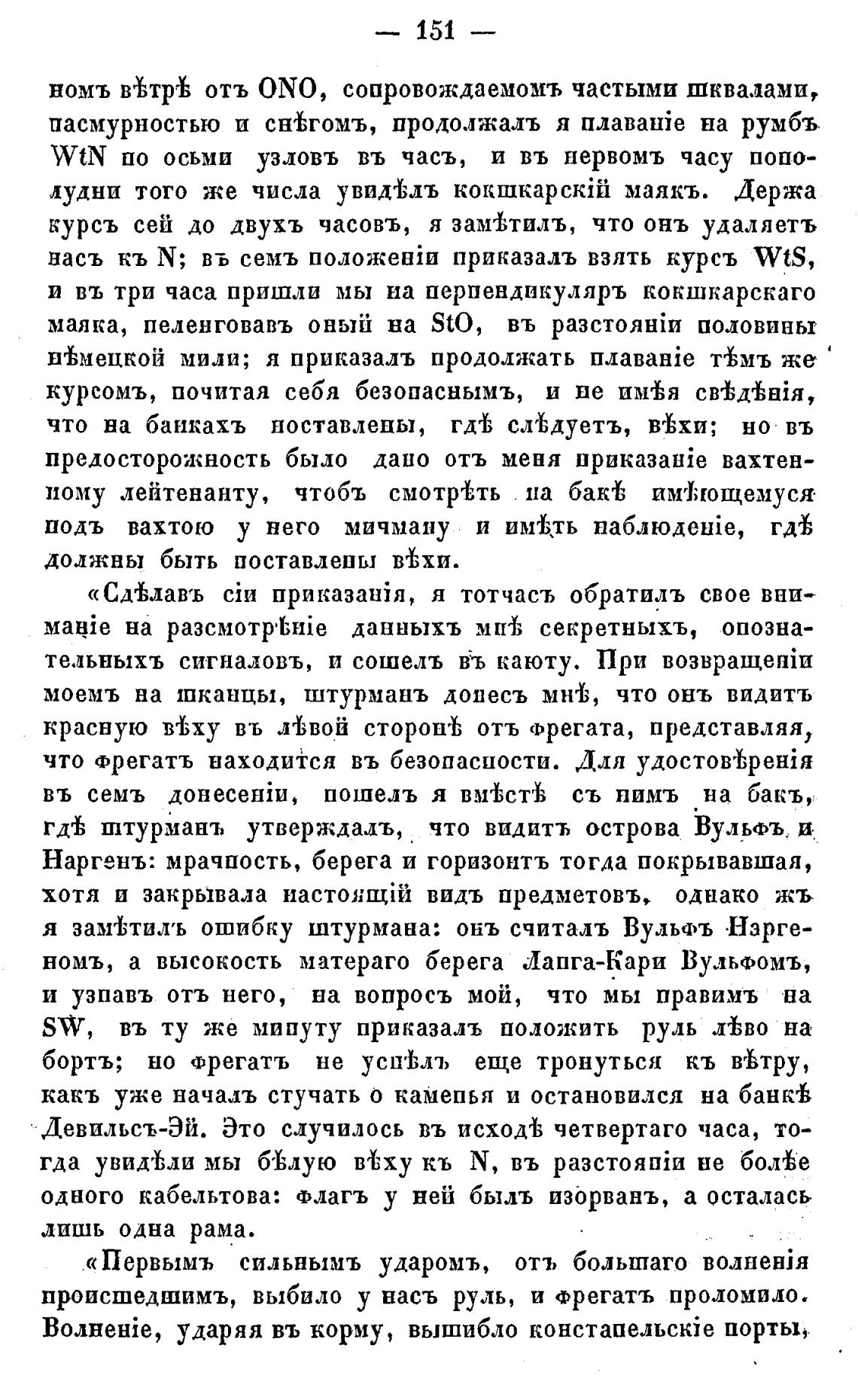 происшедшимъ, выбило у насъ руль, и Фрегатъ проломило.