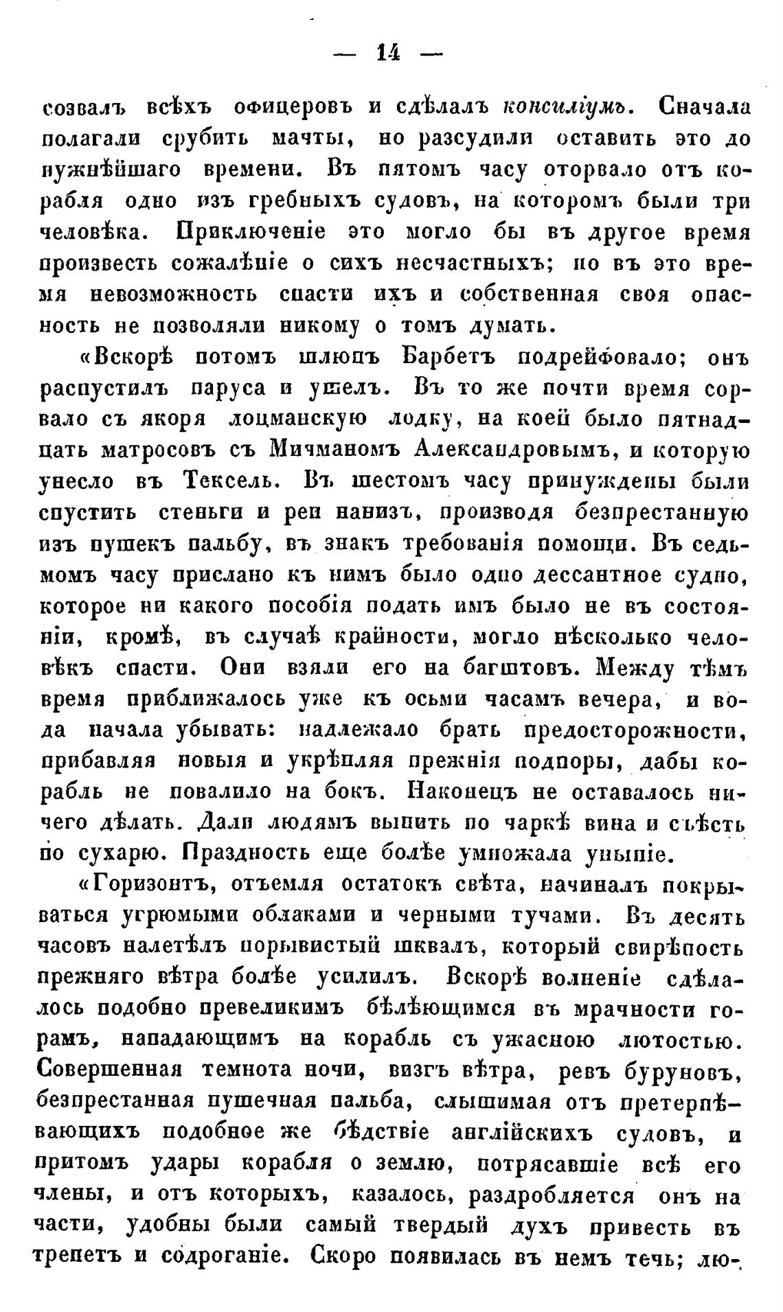 «Вскор± потомъ шлюпъ Барбетъ подрейбовало; онъ