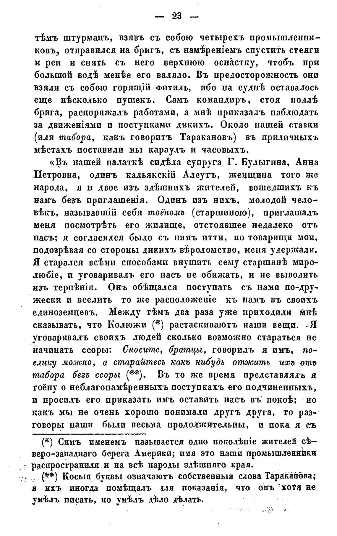 Косыя буквы означаютъ собственныя слова ТараКййбва;
