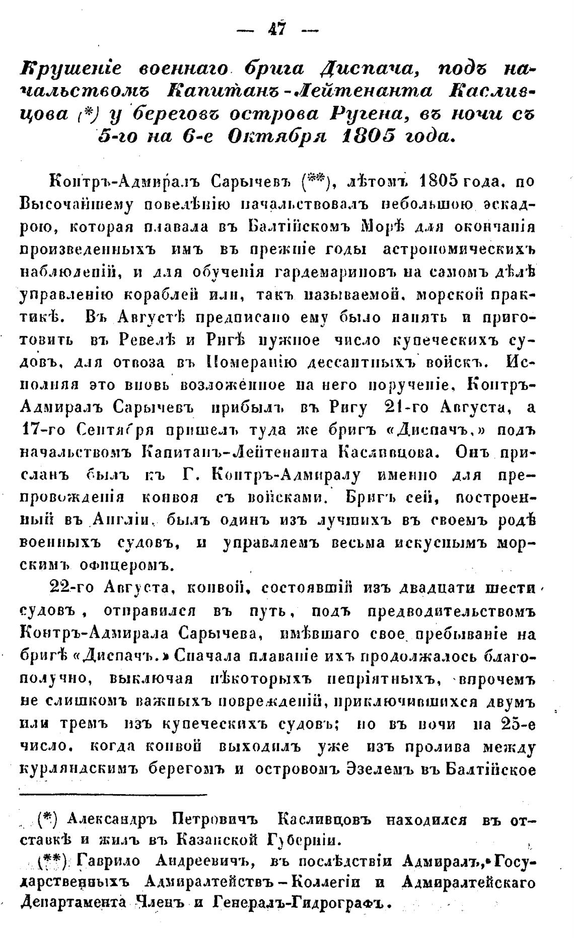 (*.) Александръ Петровичъ Касливцовъ находился въ от—