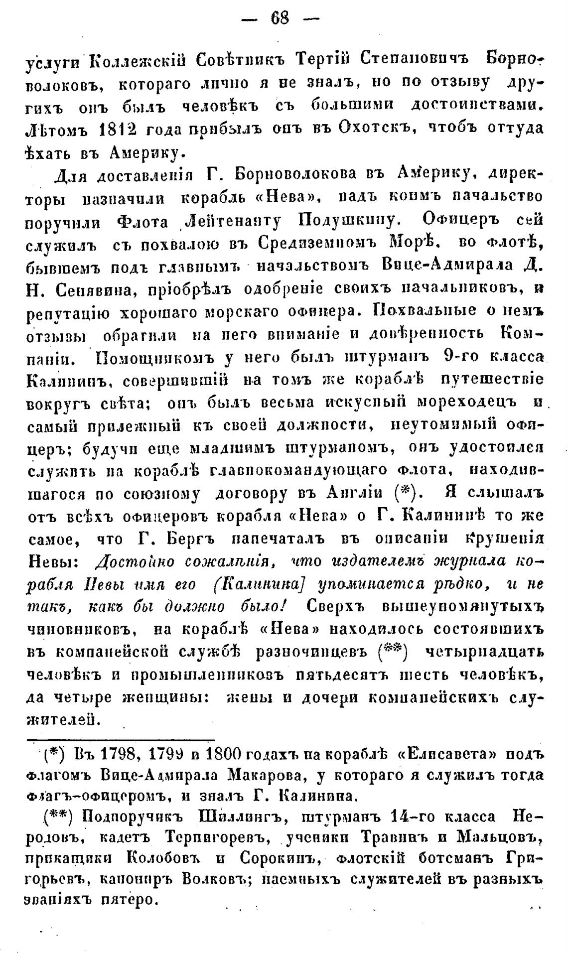 (*) Въ 1798, 1799 п 1800 годахт, на корабхЬ «Елисавета» подъ