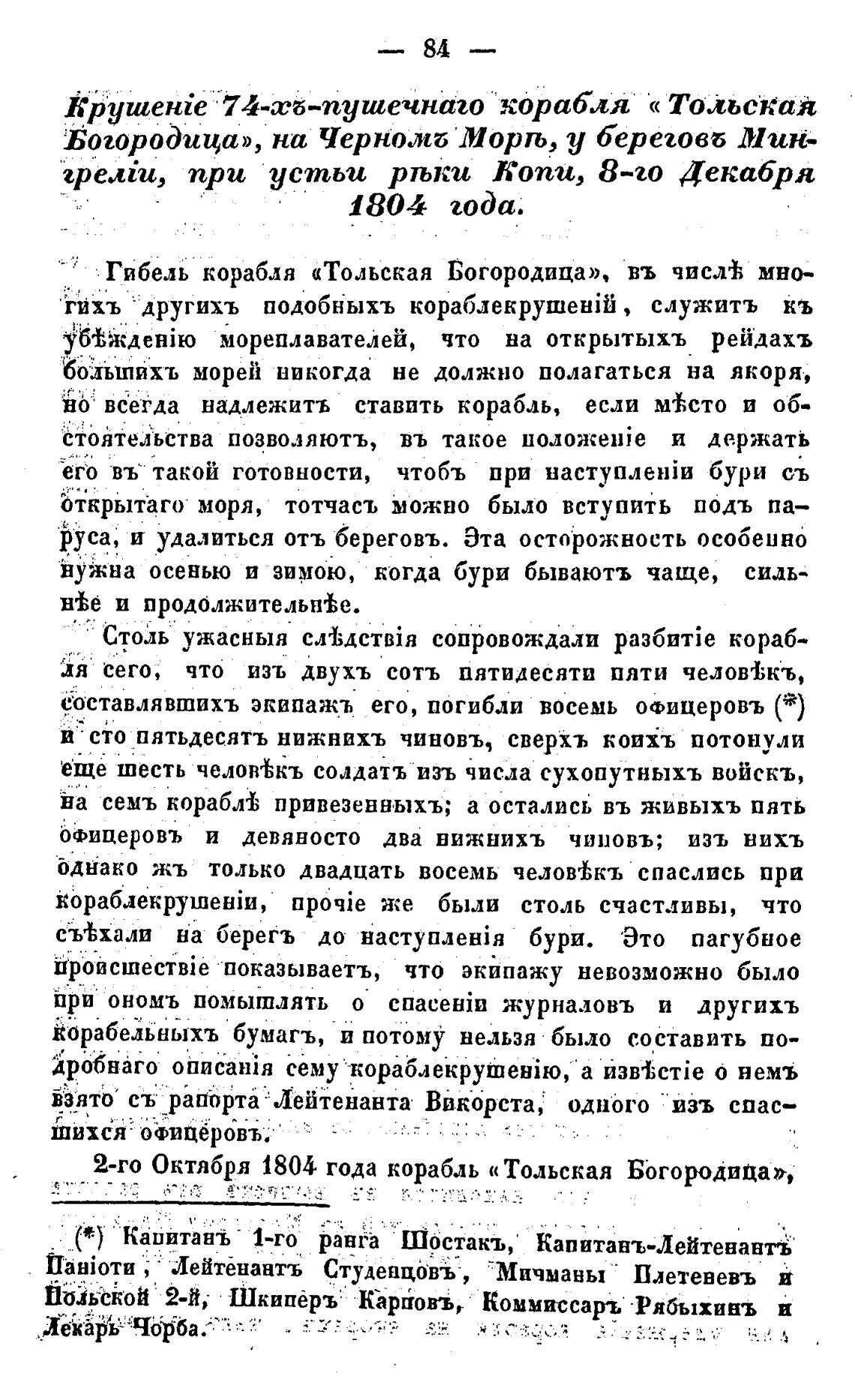 2-го Октября 1804 года корабль « Тольская Ббгородвца»,