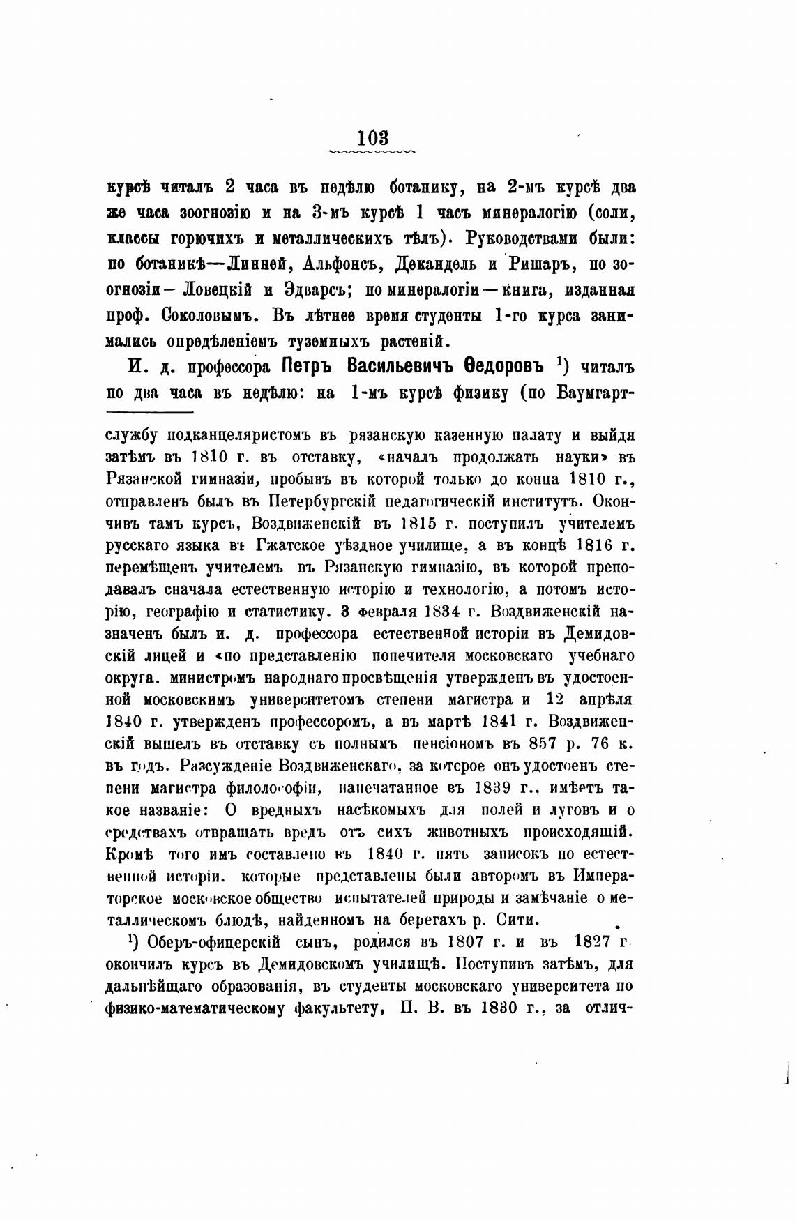 И. д. профессора Петръ Васильевичъ еедоровъ 1) читаль