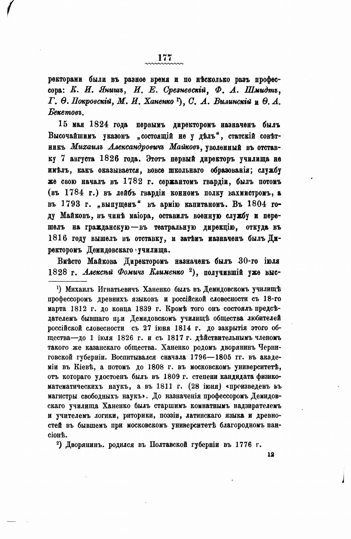 1) Михаилъ Игнатьевичъ Ханенко быль въ Демидовскомъ училищ•Ь