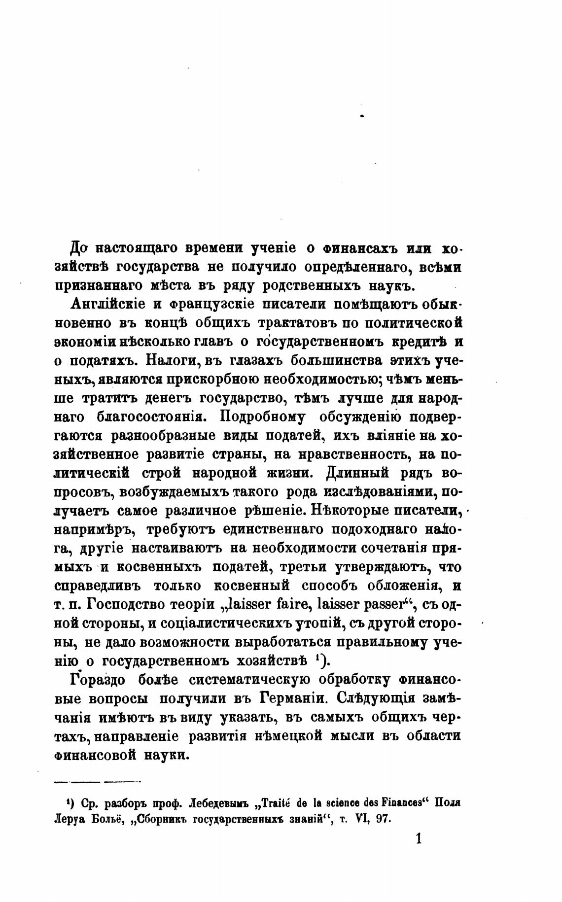 1) Ср. разборъ проф. Лебедевымъ „Trait6 de la science des Finances“ Пои
