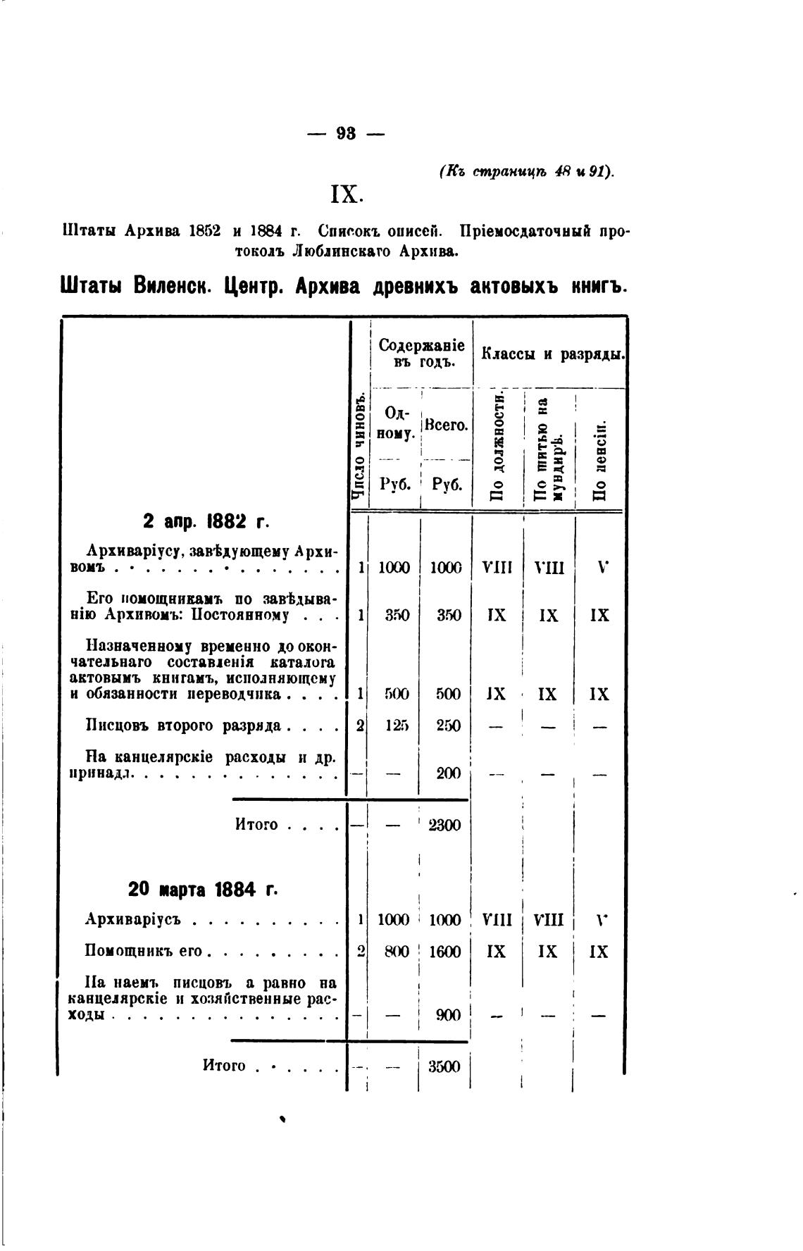 Штаты Архива 1852 и г. Списокъ описей. про-