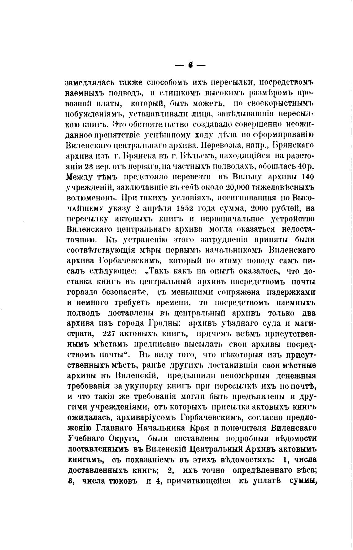 Виленскаго центра.льнаго архива. Перевозка, напр., Брянскаго