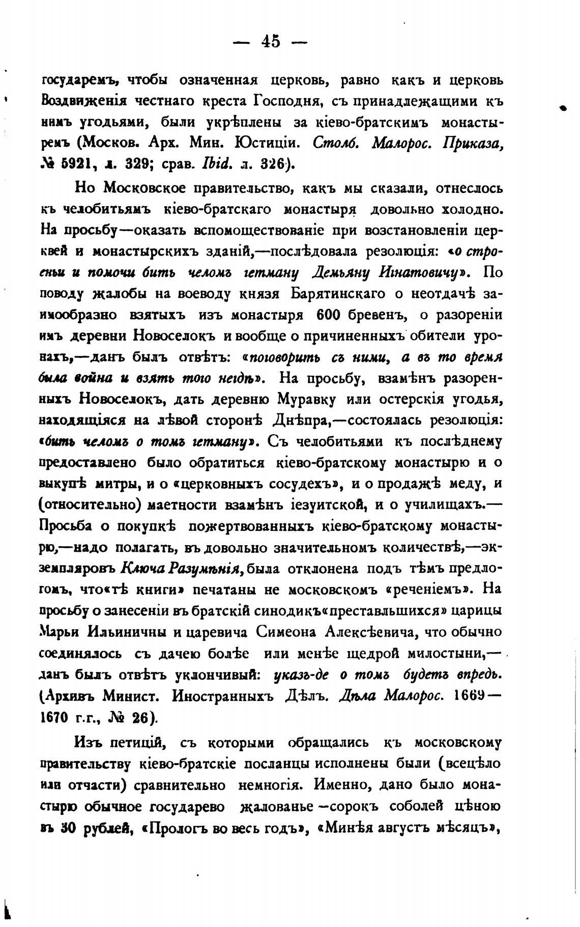 (Архивъ Минист. Иностранныхъ ДАЛЬ. Дола Малорос. 1669—