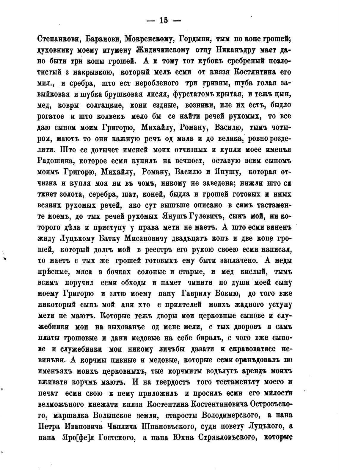 даю сыном моим Григорю, Михайлу, Роману, Василю, тымъ чоты-