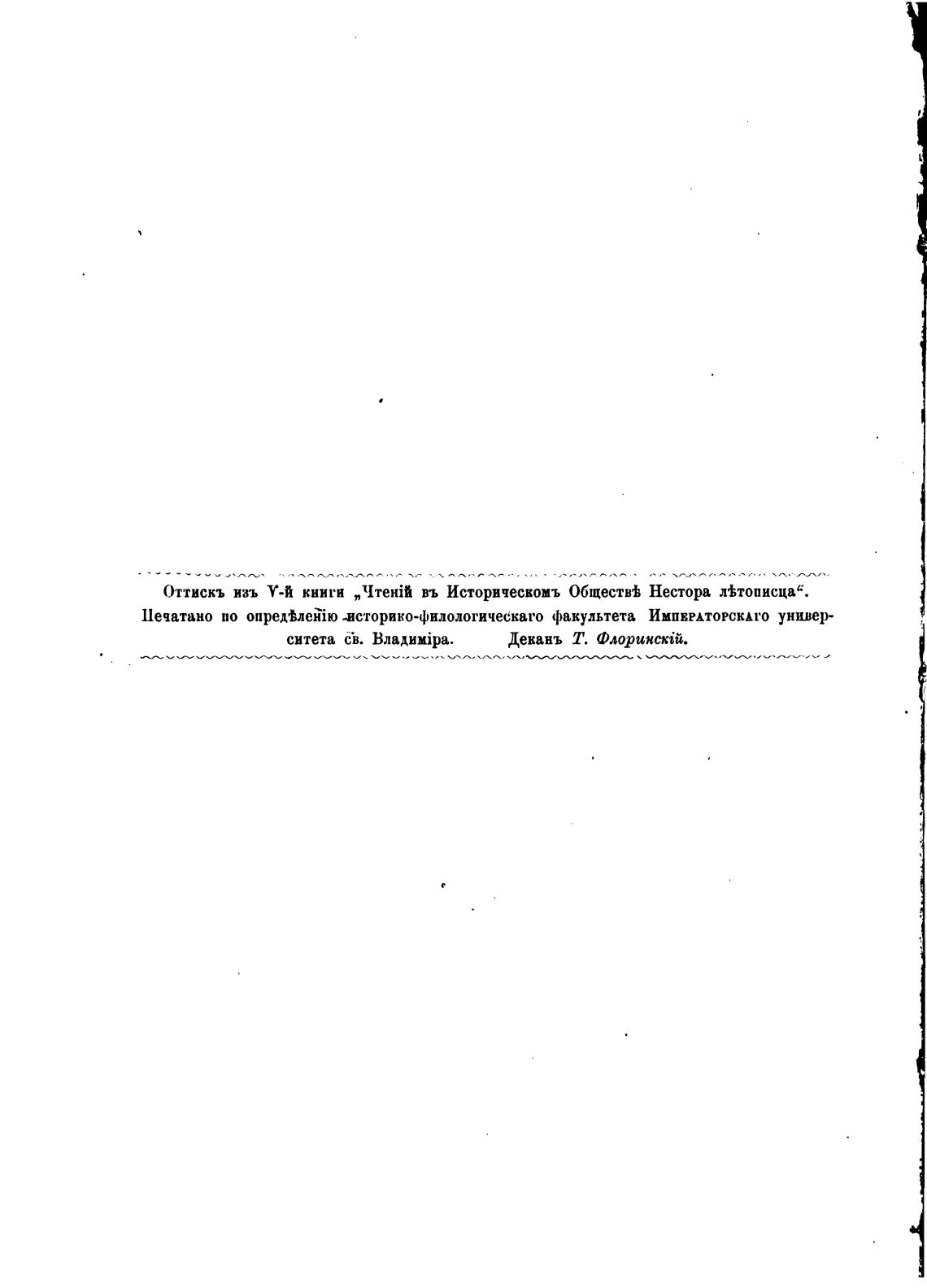 Оттискъ изъ У-й книтн „11TeHii въ Историческомъ Обществ± Нестора Втописца“.