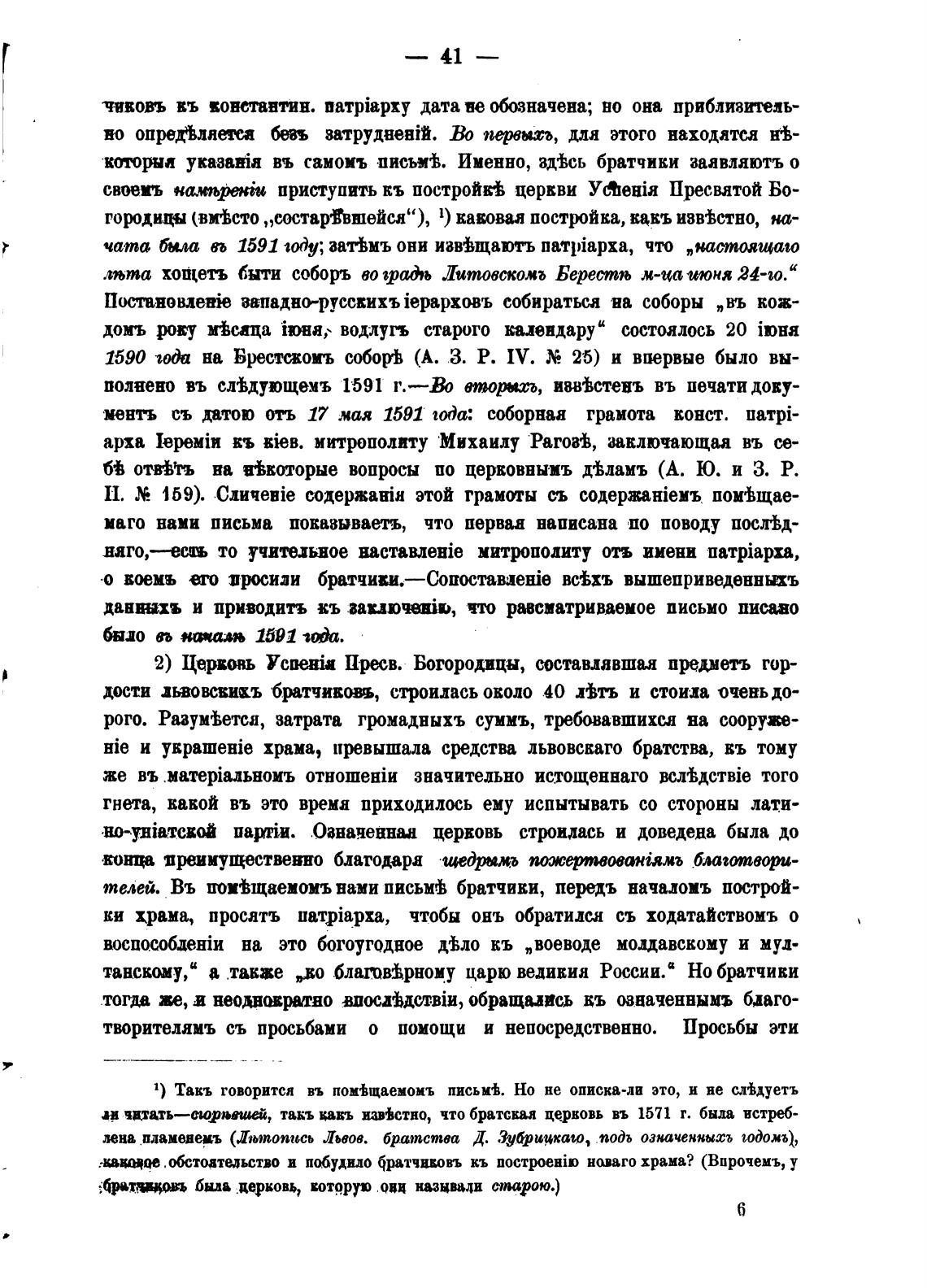 чата была п 1591 оду; затвмъ они изв'ђщаютъ пат1йарха, что „настояшаго