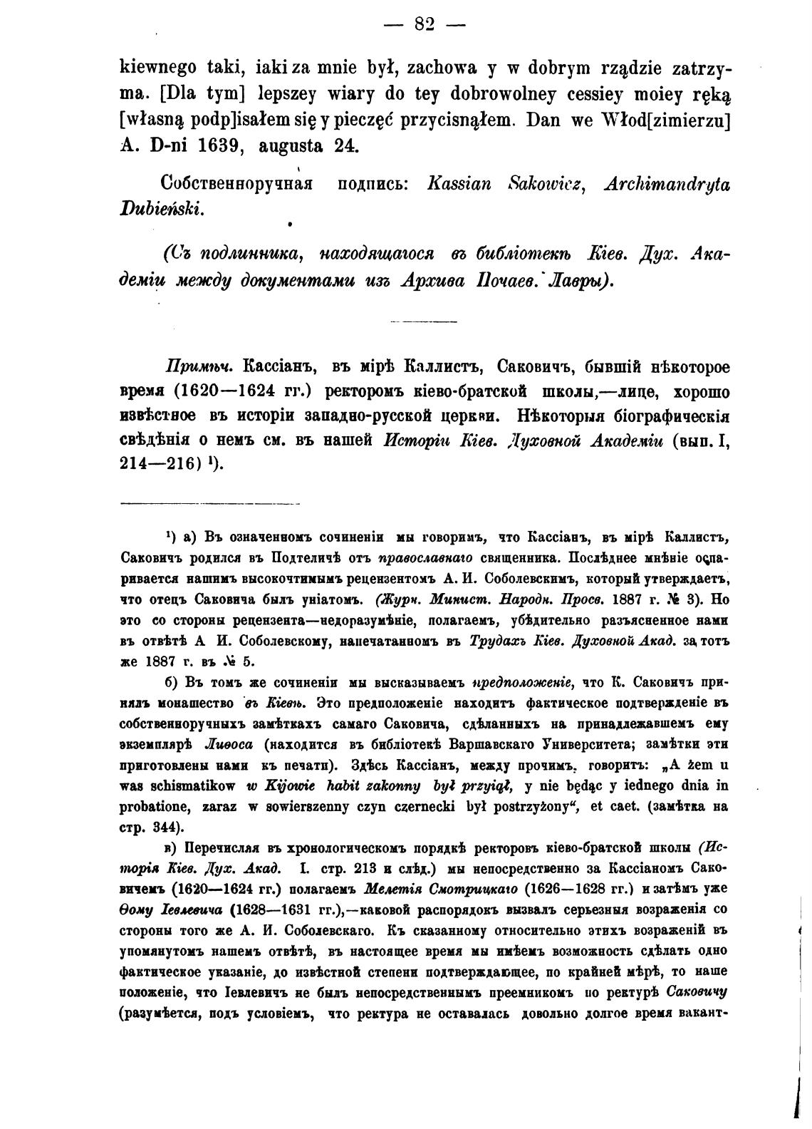 Собственноручная подпись: kassian Sakowiez, Archimandryta