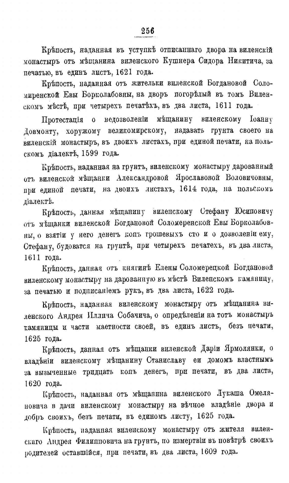 Крвпость, наданная на грунтъ, виленск,ому монастыру дарованный