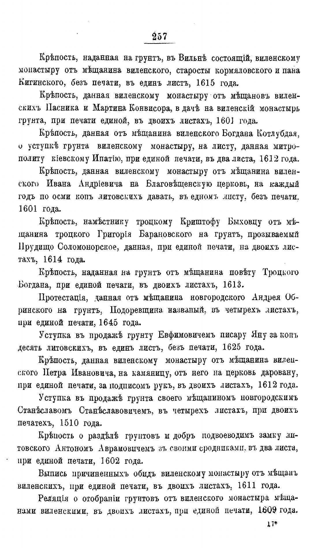 Креьпость, наданная на грунтъ, въ ВильшЬ виленскоиу