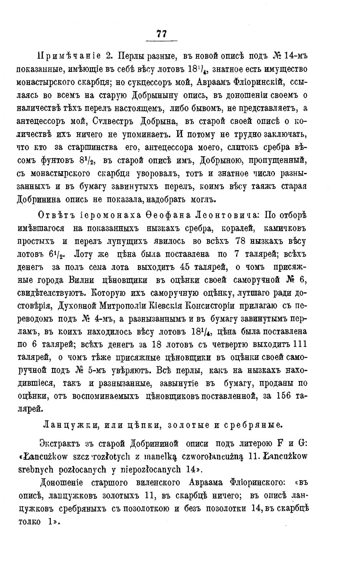 Экстрактъ зъ старой Добриноой описи подъ литерою F и G: